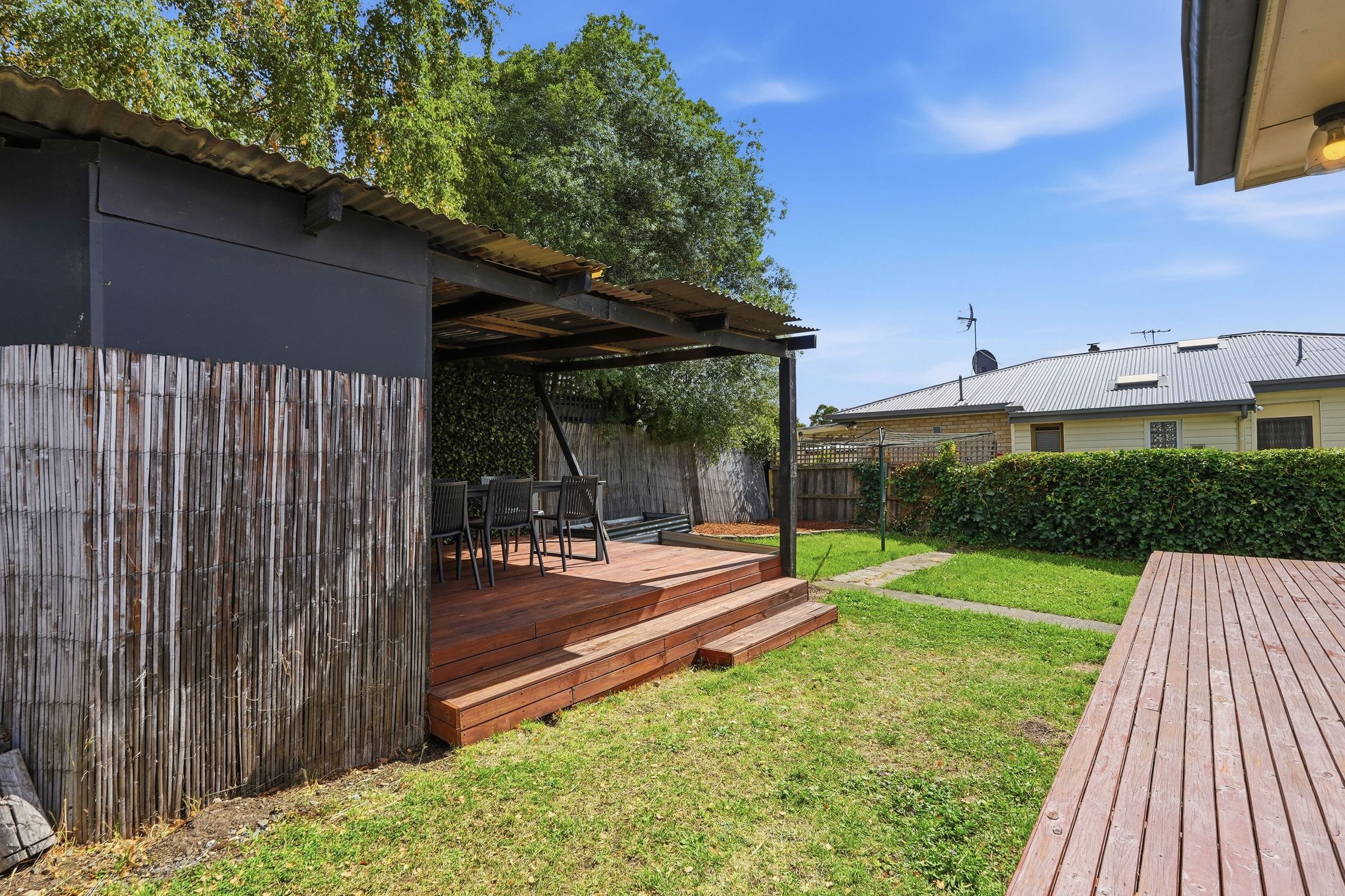 - Usable outdoor space for entertaining or future improvement