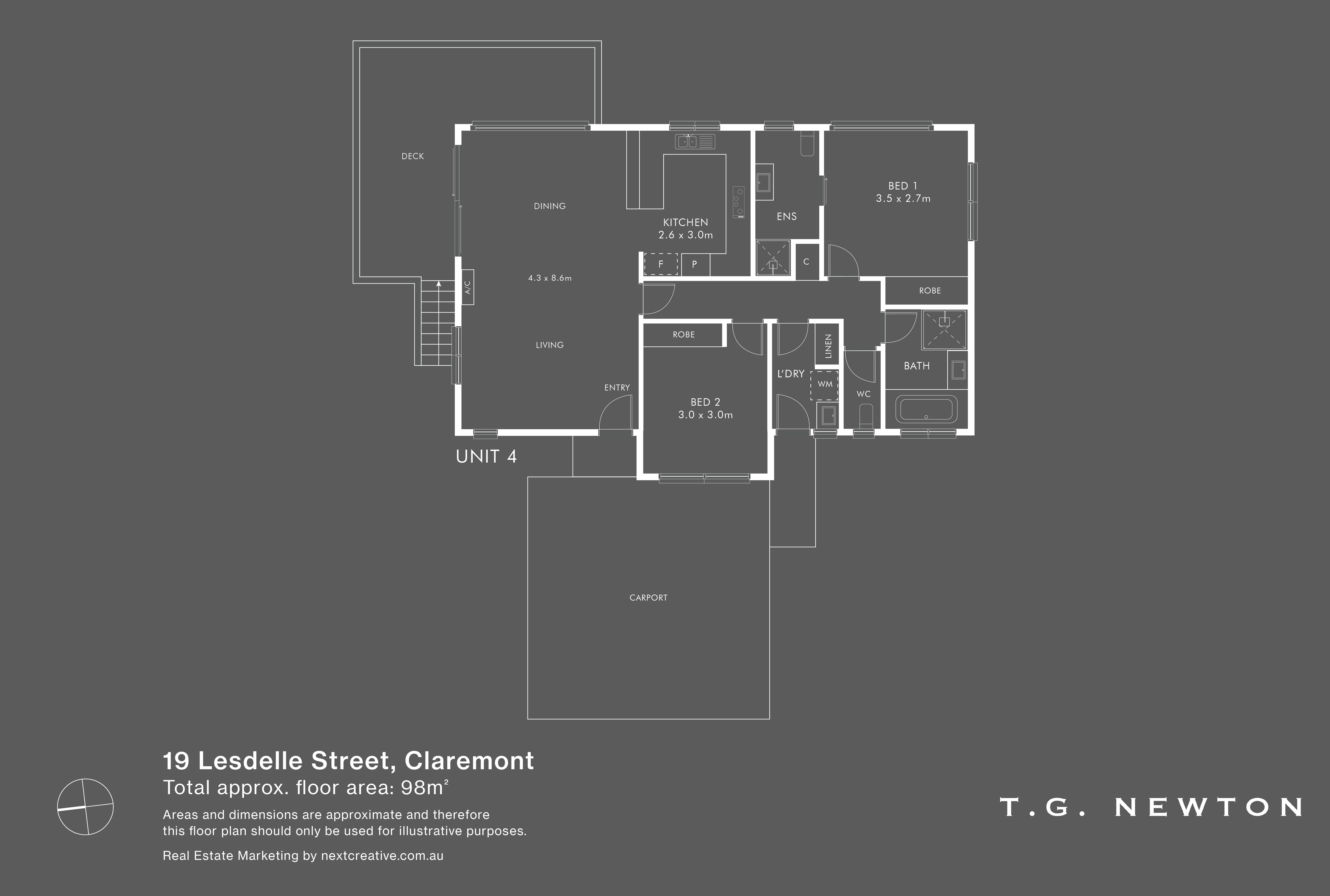 Located within this new homes area of Claremont, 19 Lesdelle street offers a choice of spacious 2 bedrooms, 2 bathroom + carport single story Units and larger 3 bedroom, 2 bathrooms + garage Townhouses.