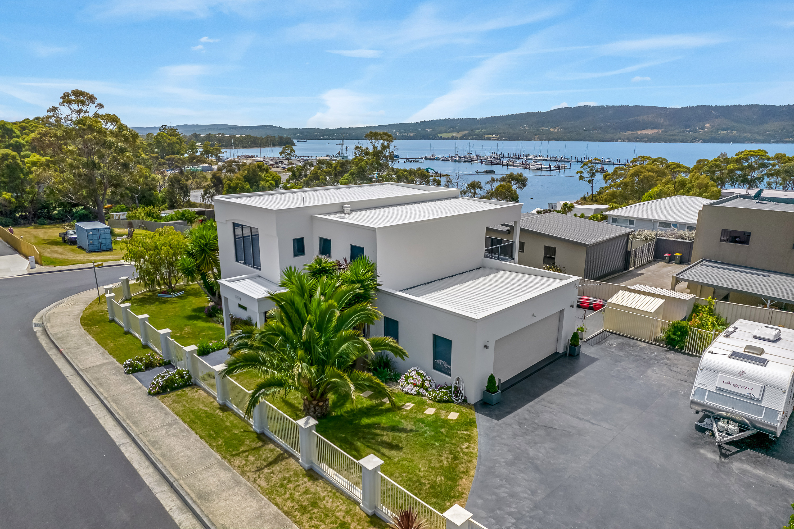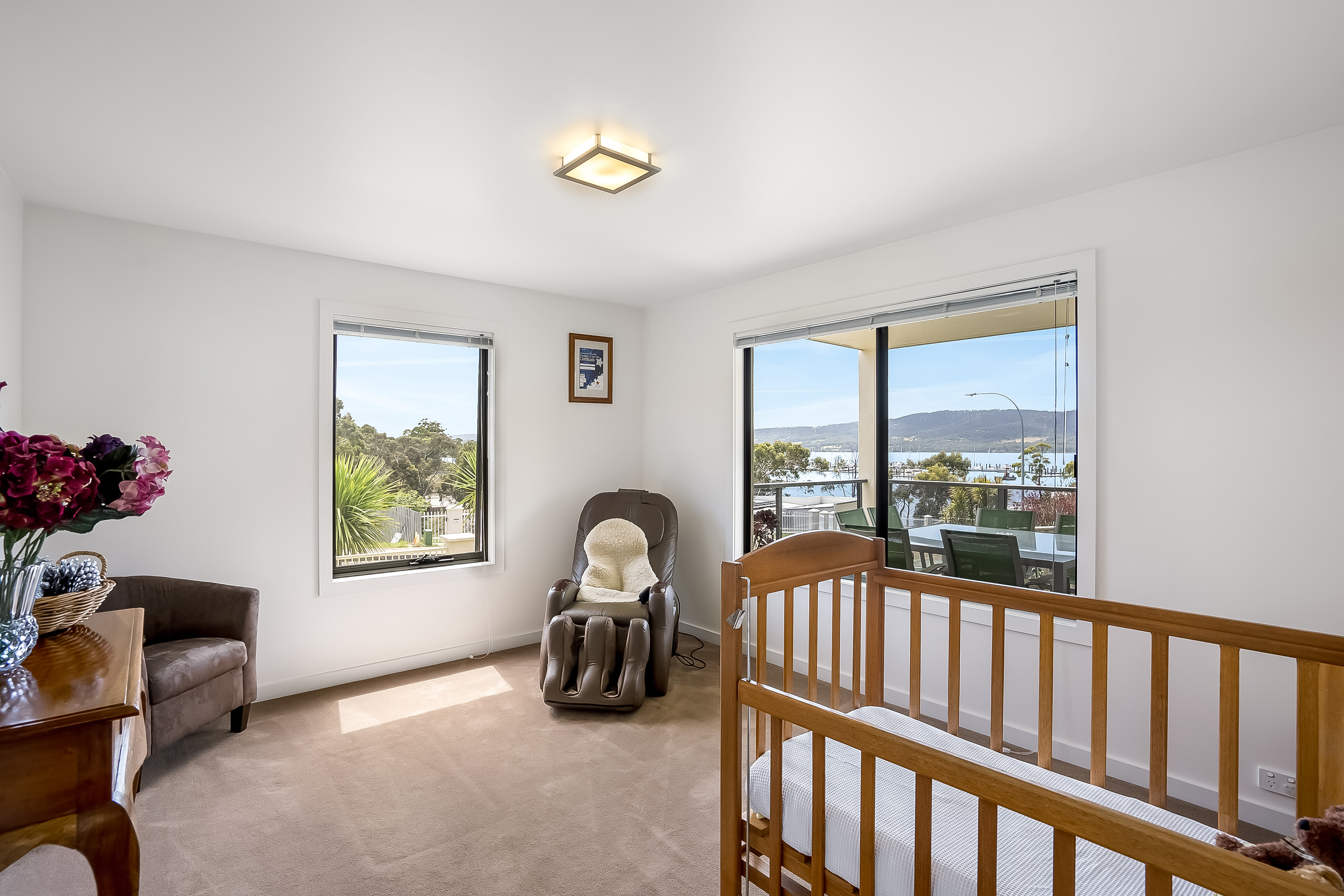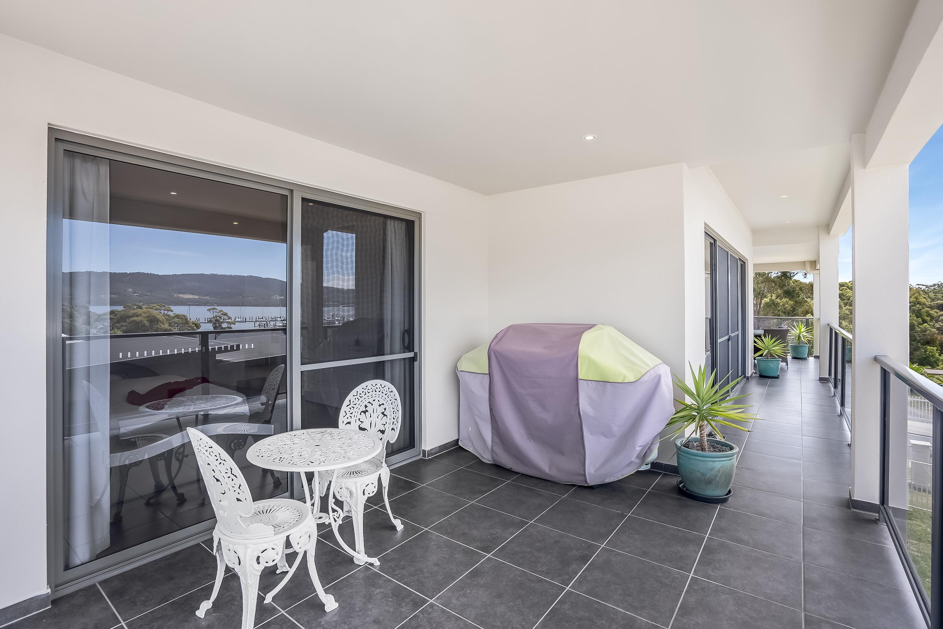 Upstairs offers multiple living areas, a gourmet kitchen containing quality Bosch appliances, the master bedroom with walk in robe, designer bathroom and an undercover outdoor entertainment area overlooking the D'Entrecasteaux Channel, home to the nearby newly developed Margate marina - where you sit back, relax and watch the boats sail by.