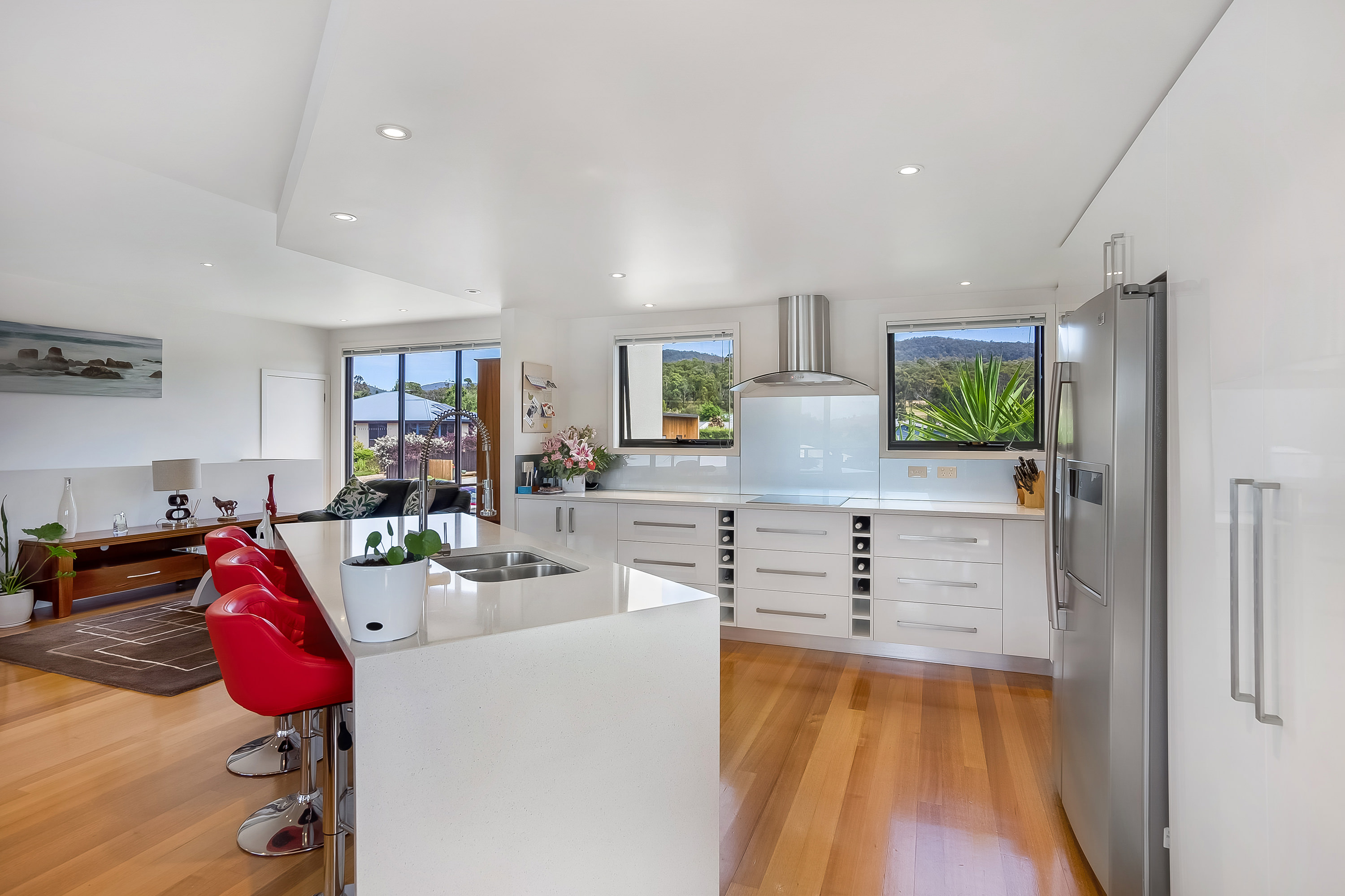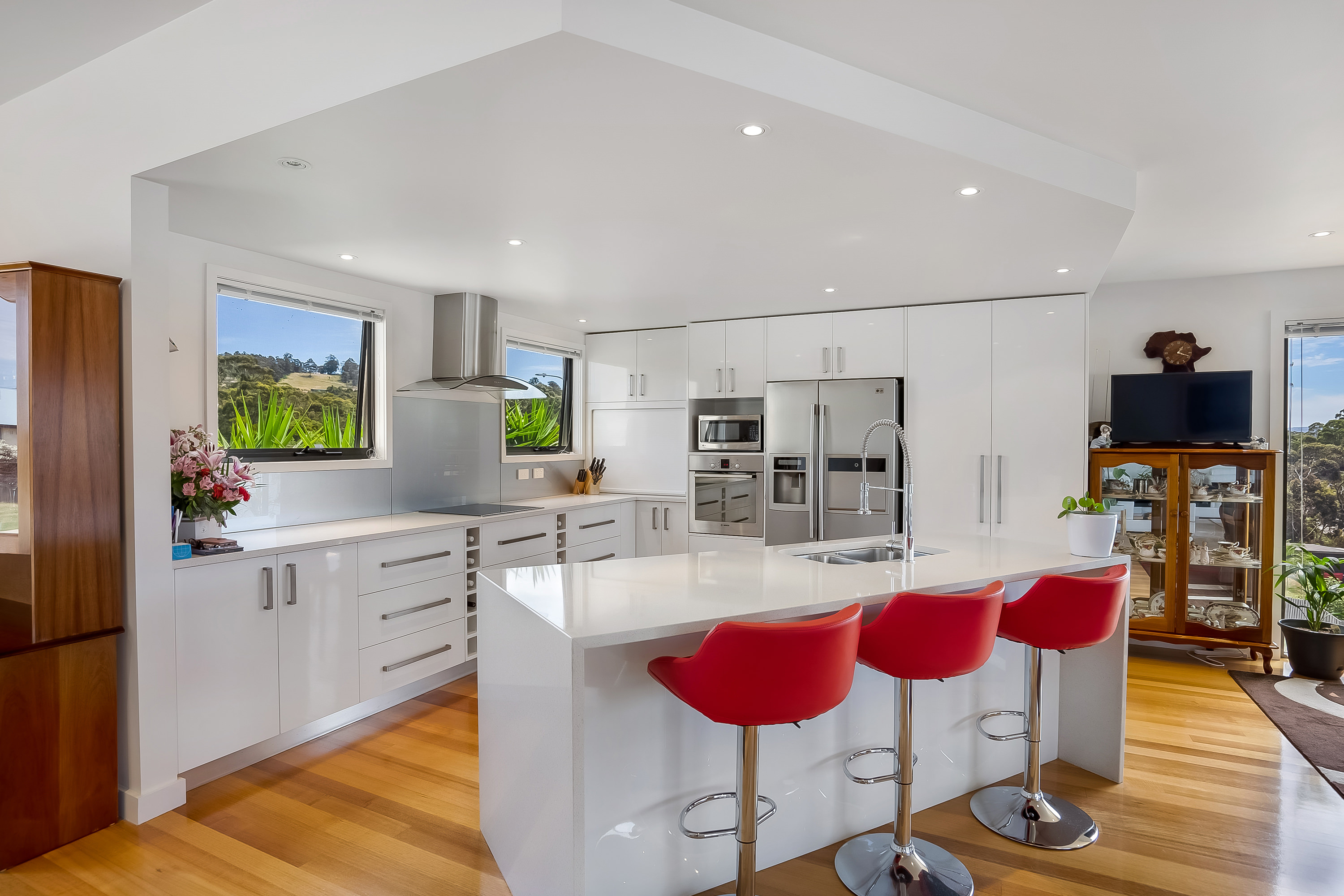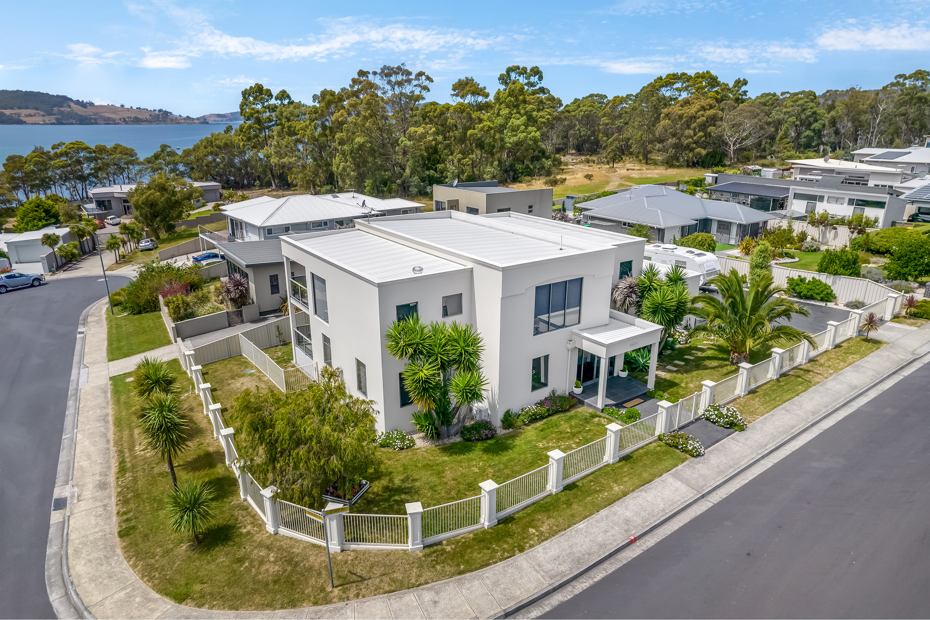 Upstairs offers multiple living areas, a gourmet kitchen containing quality Bosch appliances, the master bedroom with walk in robe, designer bathroom and an undercover outdoor entertainment area overlooking the D'Entrecasteaux Channel, home to the nearby newly developed Margate marina - where you sit back, relax and watch the boats sail by.