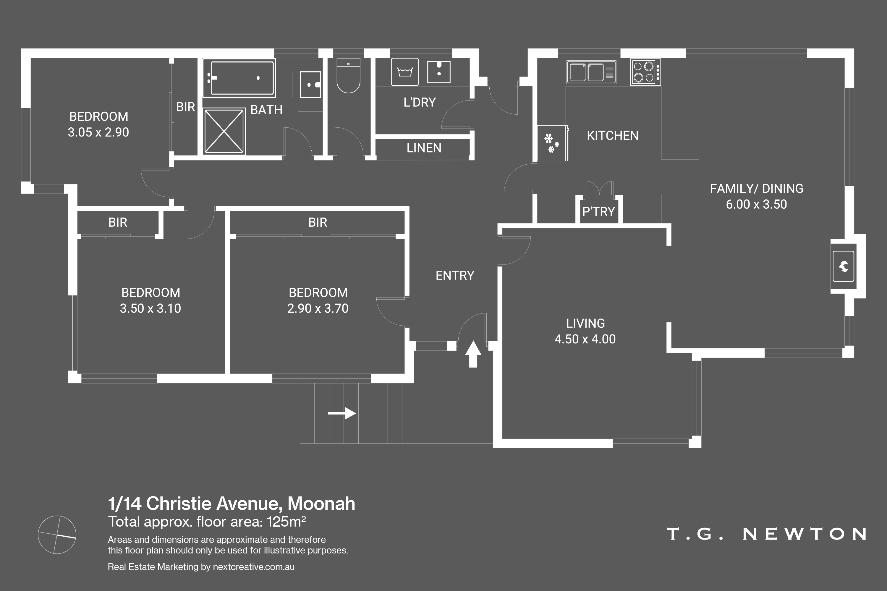 The kitchen offers plenty of benchtop and storage space, a breakfast bar and natural gas cooktop.