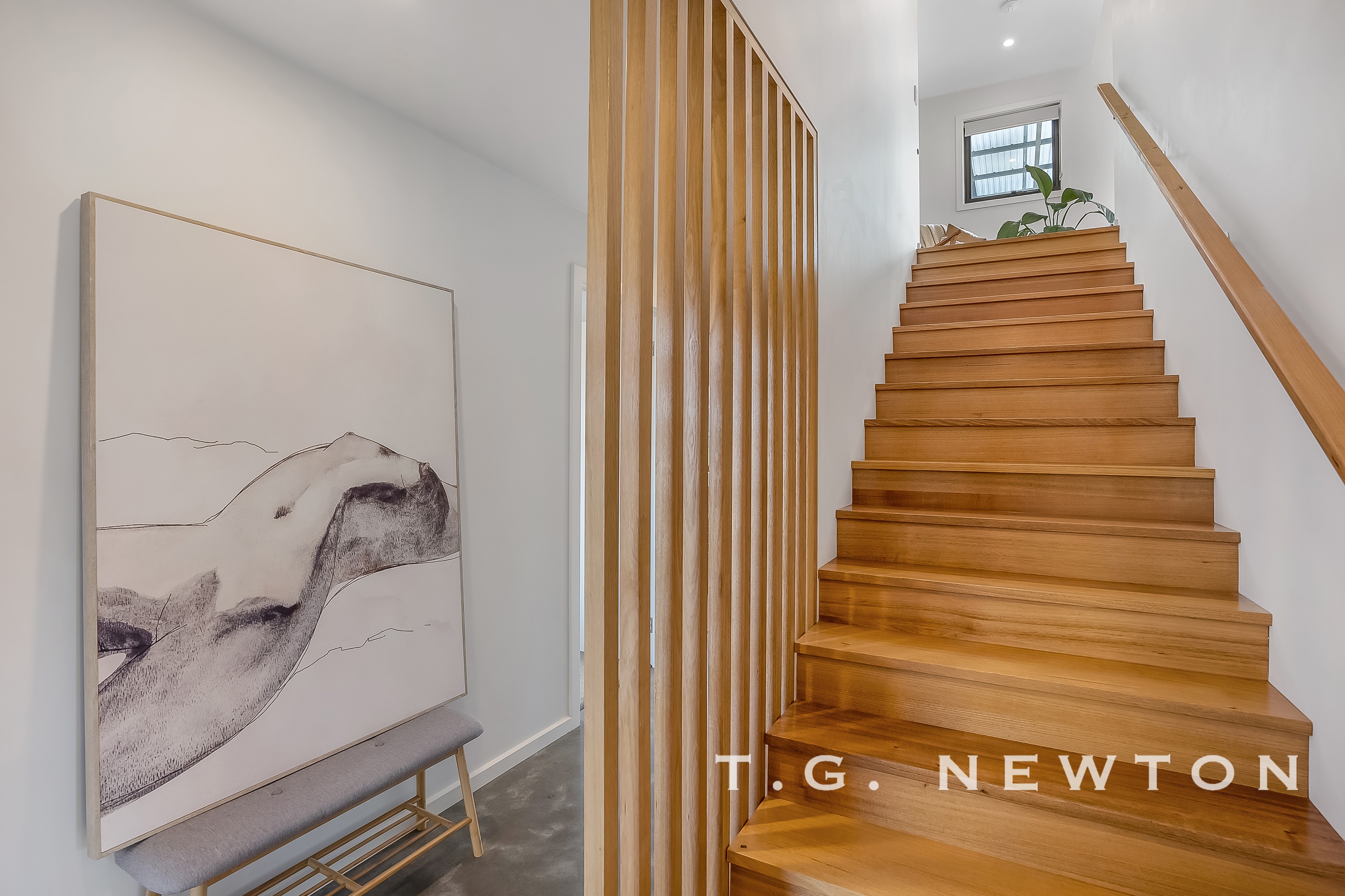 The main bedroom gives you privacy and separation, capturing the water views, walk-in wardrobe and stunning ensuite with double vanities, stone bench and feature led lighting.