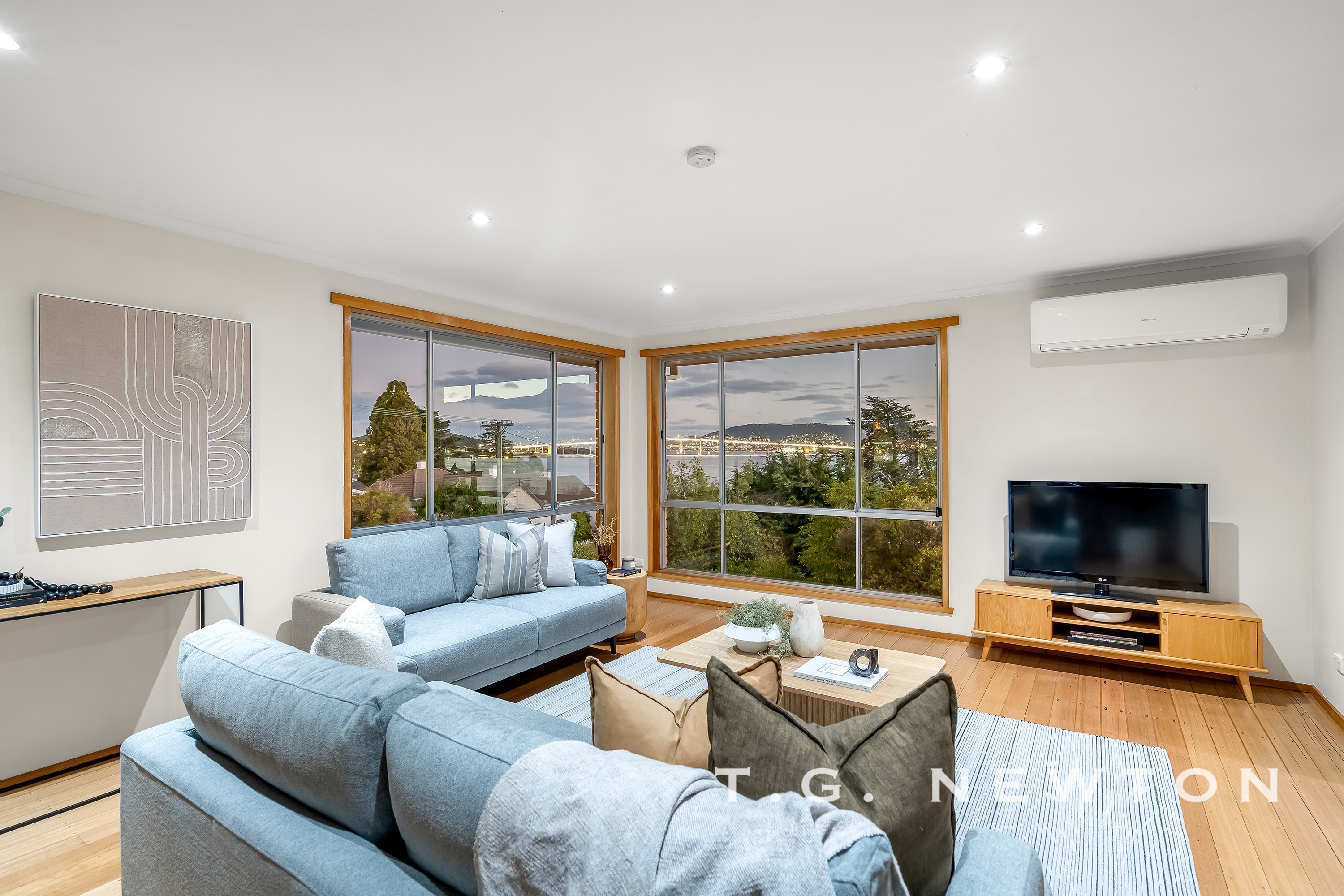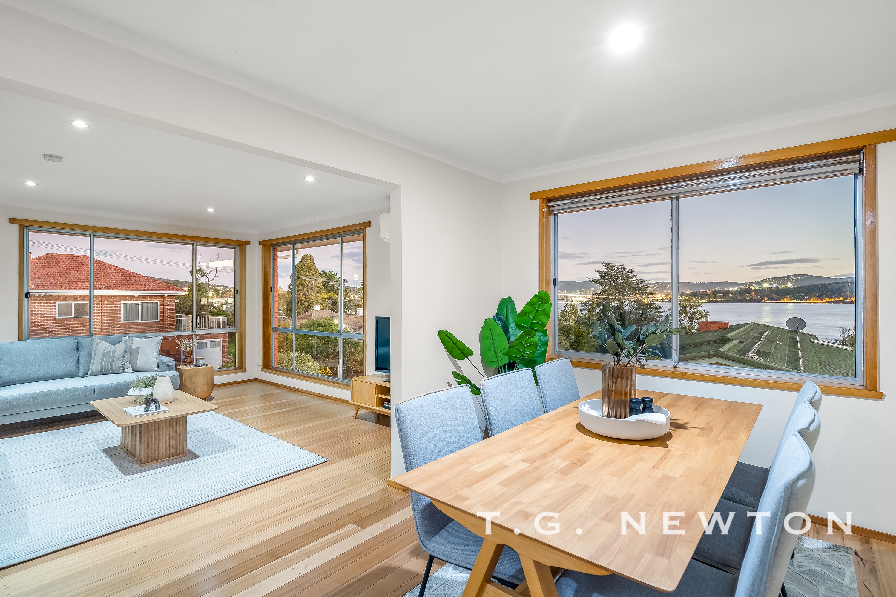 The open-plan kitchen, dining, and living area at the front of the home magnifies the stunning water and mountain views, allowing you to soak up the sun and enjoy the scenery from the comfort of your home. The recently upgraded carpets and restored Tasmanian Oak floorboards add to the overall charm and character of the home.