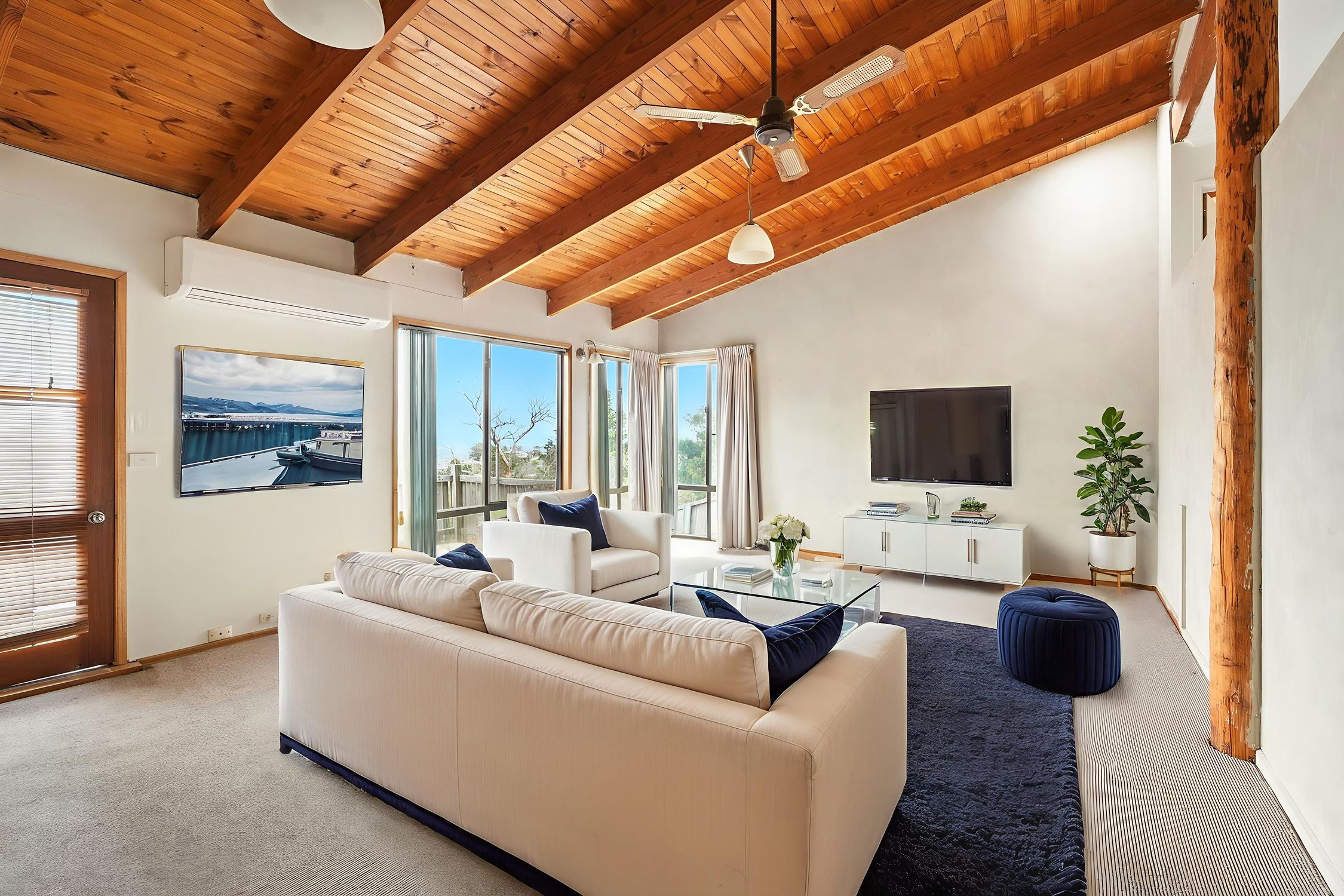 The split level adds a unique touch to this unique home with the living area providing access onto the rear deck overlooking the yard where there is ample room for the kids to play & or vegetable garden.