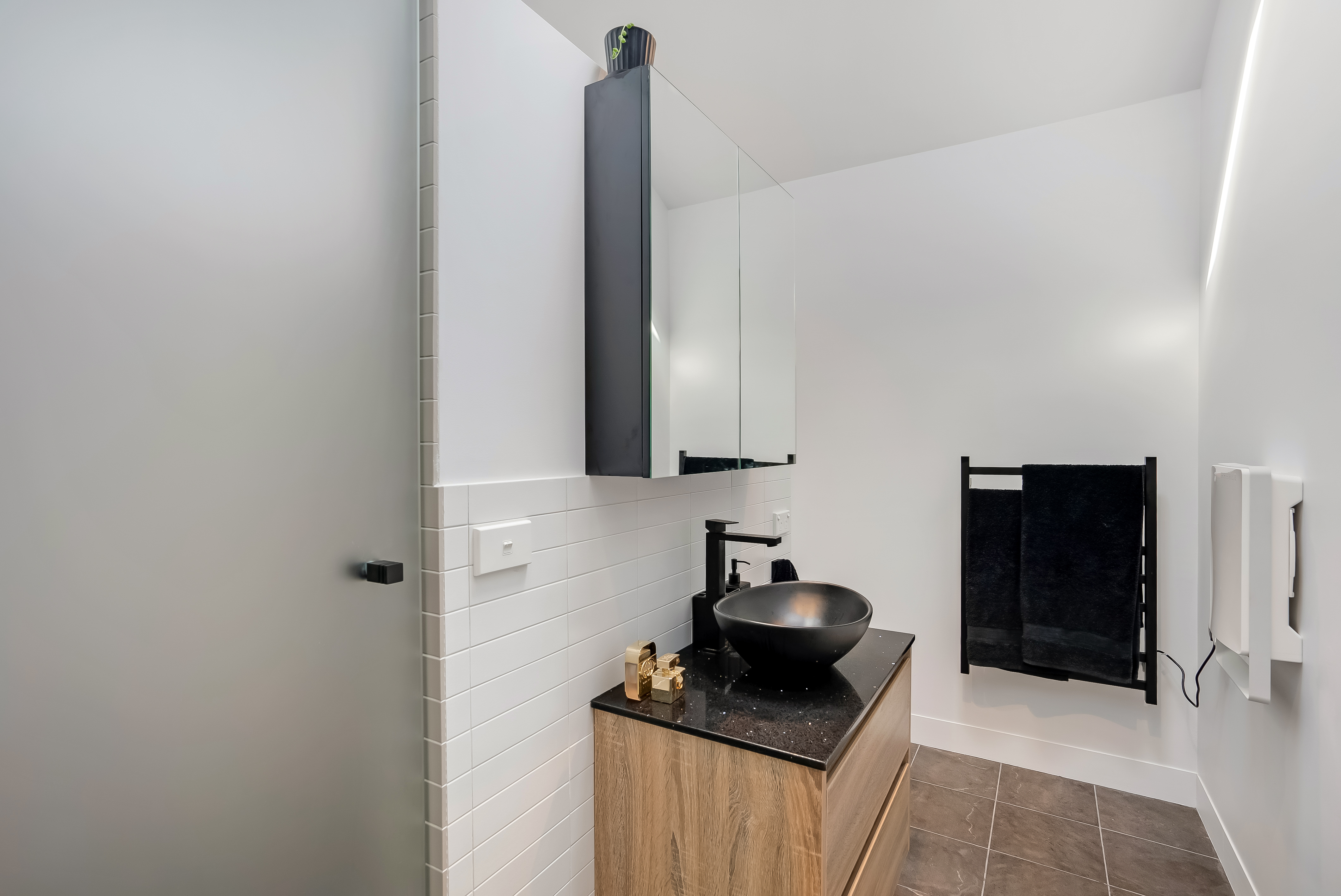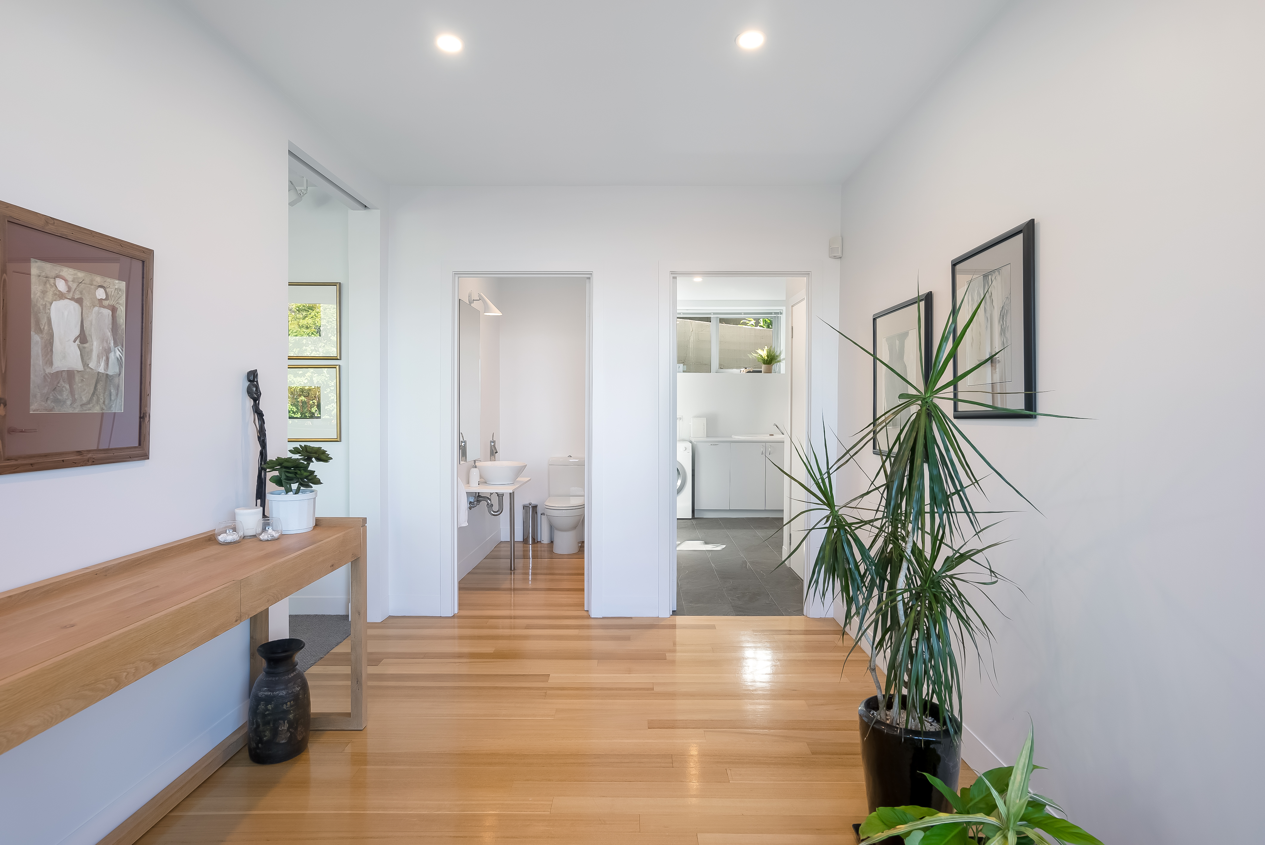 The ultra-generous master suite has everything to be wished for with a spacious walk-in wardrobe, dressing room and ensuite with a feature bath and wet area shower. A private living area is adjoined offering a place of seclusion and relaxation. Also on the lower level is the third bedroom, a generously sized laundry and a space under the stairs that is perfect for a wine cellar.