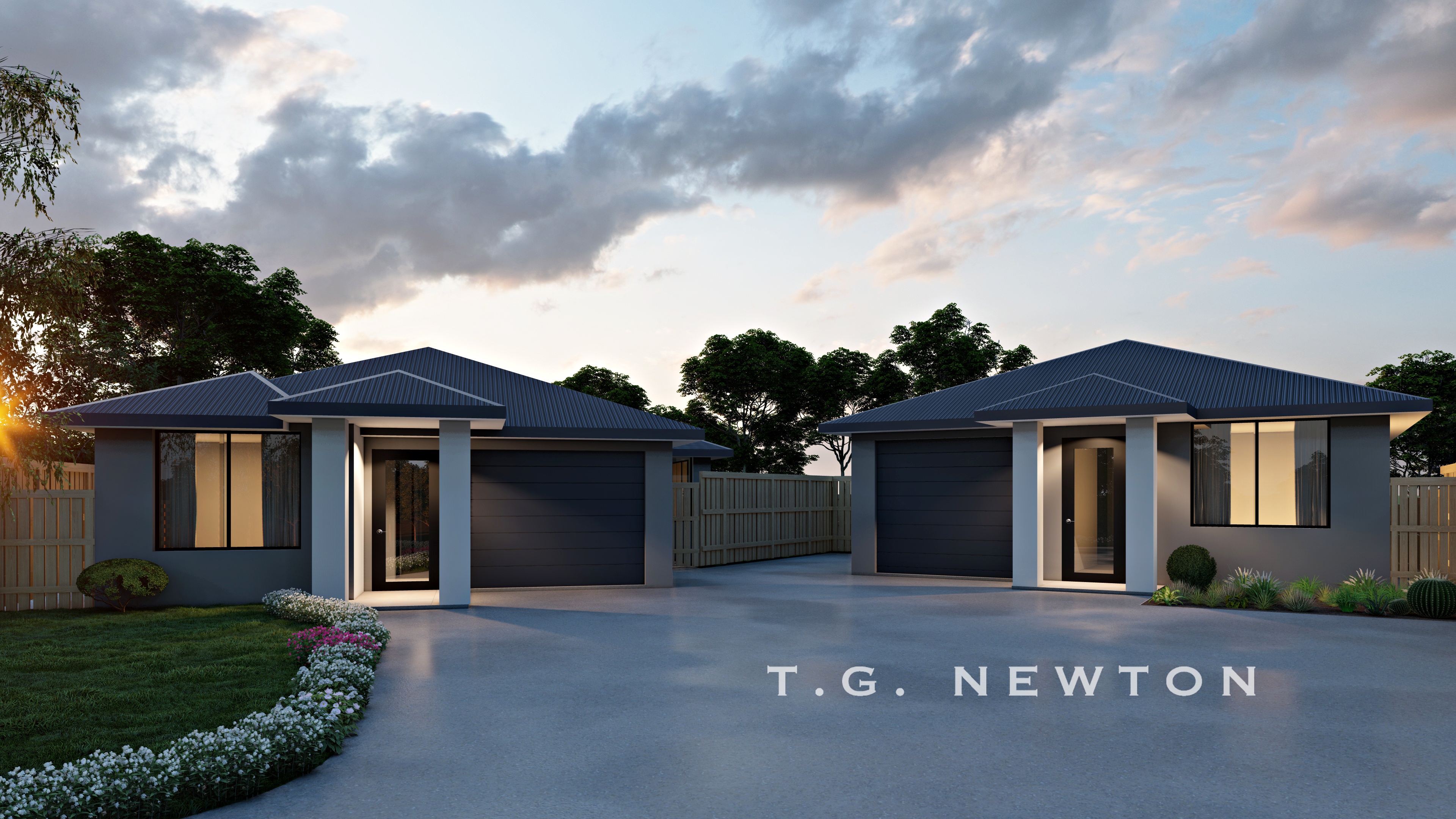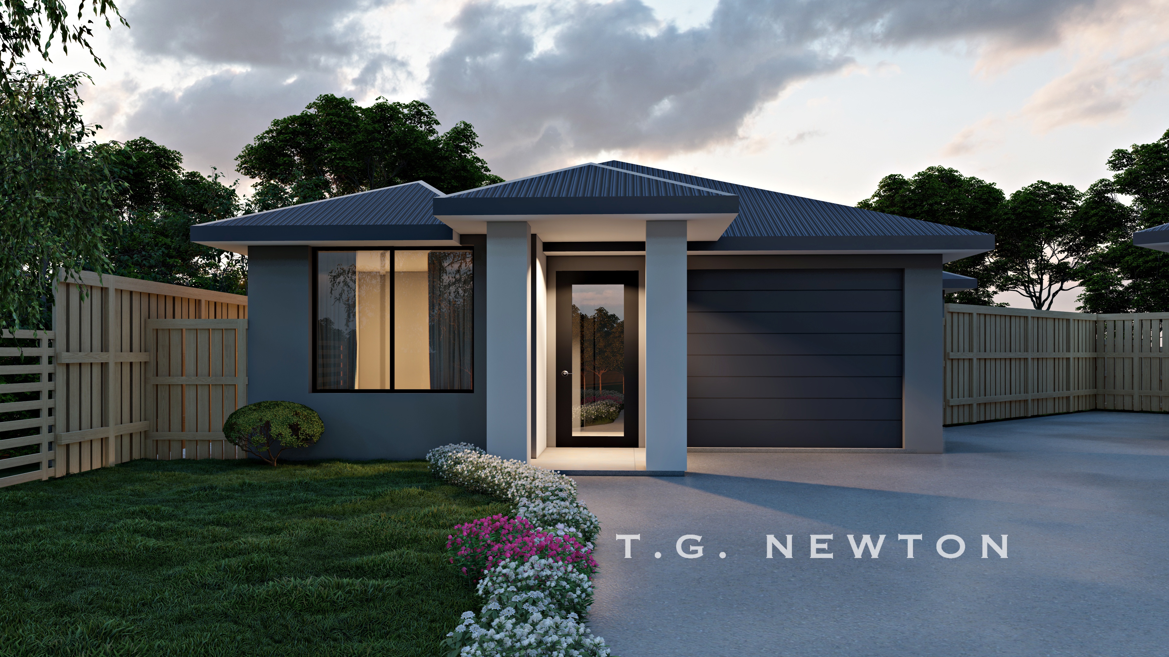 - Monument colorbond roof over Timeless grey rendered walls