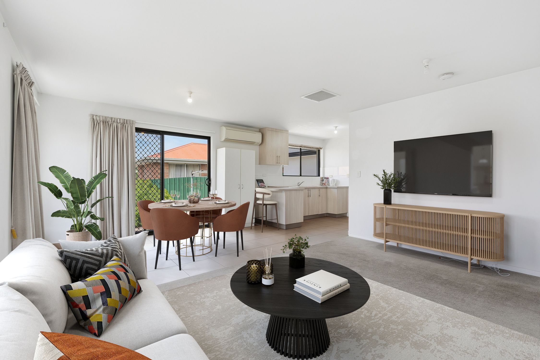 • Open plan living area with reverse cycle air-conditioner.