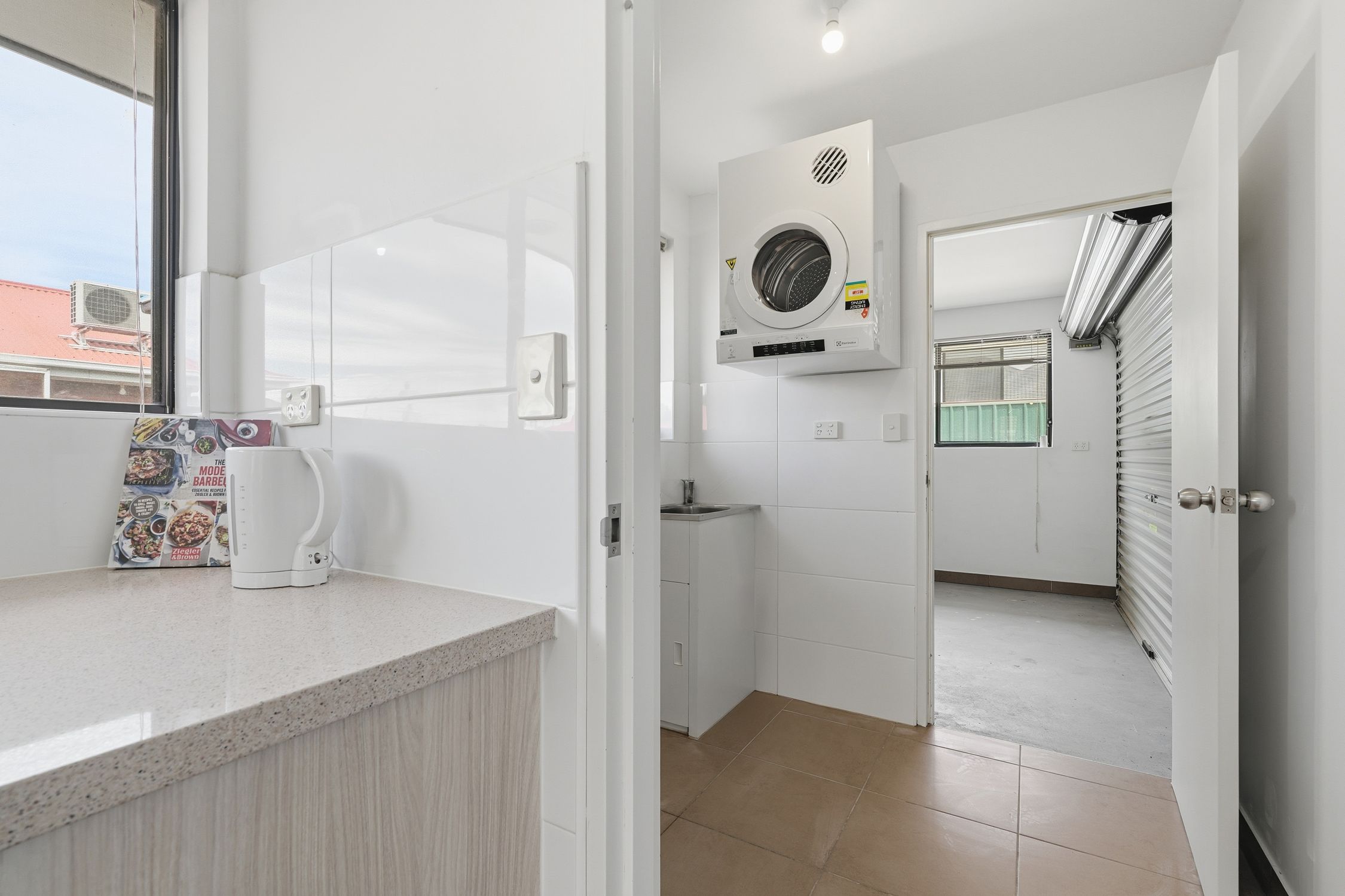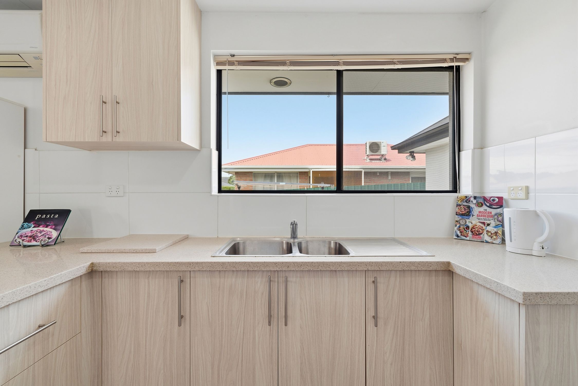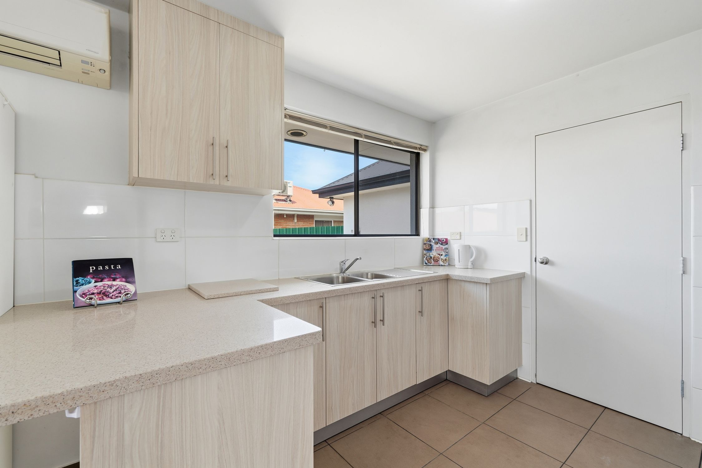 The heart of the unit is the inviting living room, designed for both comfort and entertaining. With reverse cycle air conditioning, you can enjoy comfort all year-round. The open-plan layout seamlessly connects the living area to the outdoor courtyard..