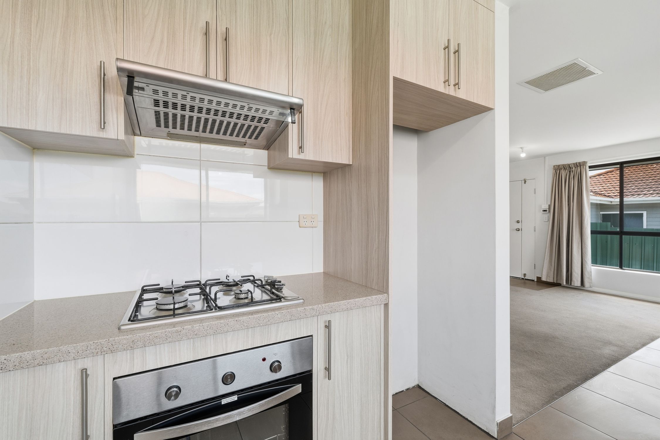 • Contemporary kitchen with S/S appliances and stone benchtop.