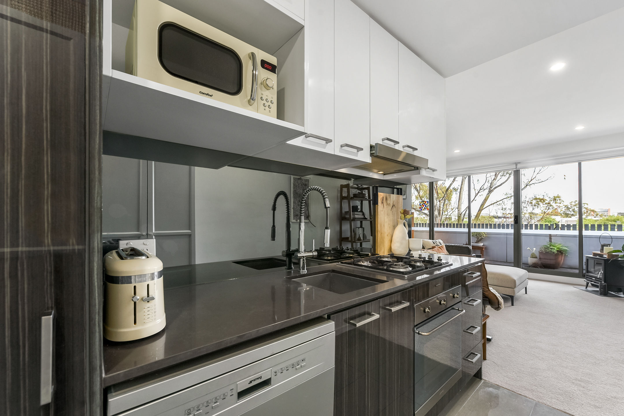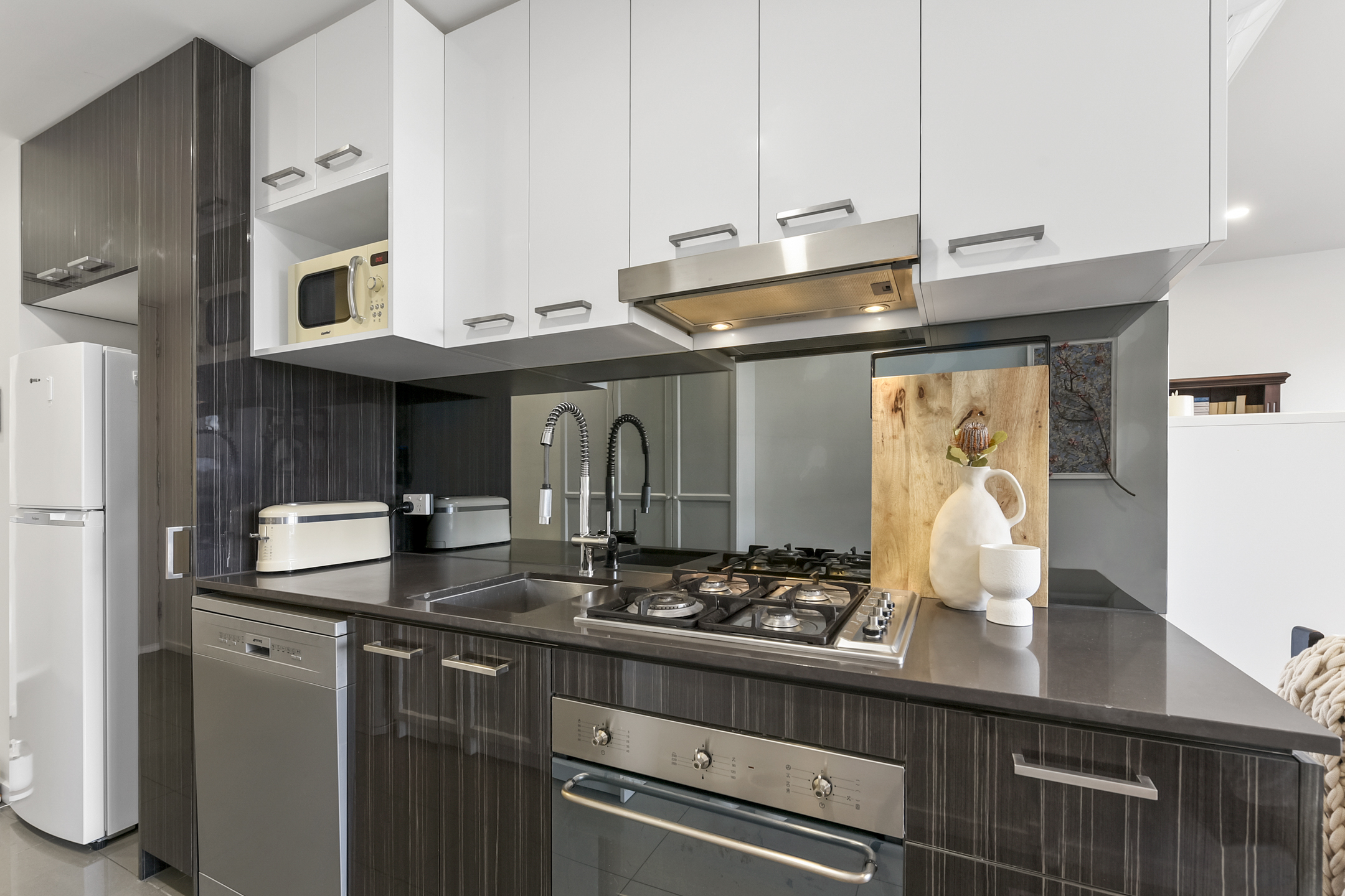 An excellent sized bedroom with mirrored built in robe has convenient direct access to the bathroom and Euro laundry whilst the tiled kitchen is well equipped with stone benchtop, gas cooktop, oven and dishwasher. Other notable features include split system heating and cooling, designated car space with storage cage, secure main entry with video intercom and secure lift access.