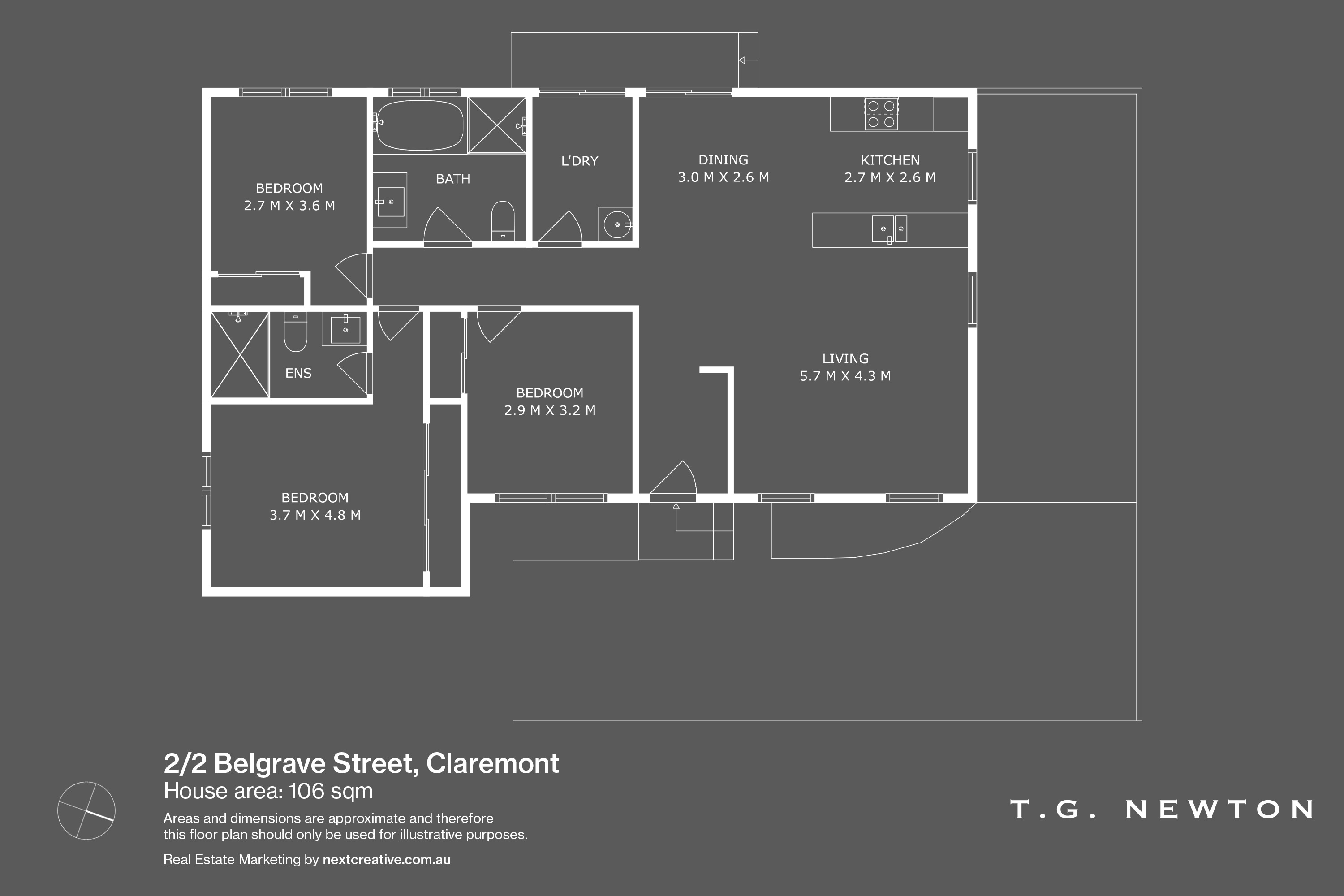 The home features three generous bedrooms, including a master complete with a private ensuite. A second well-appointed bathroom caters to the remaining bedrooms and guests.