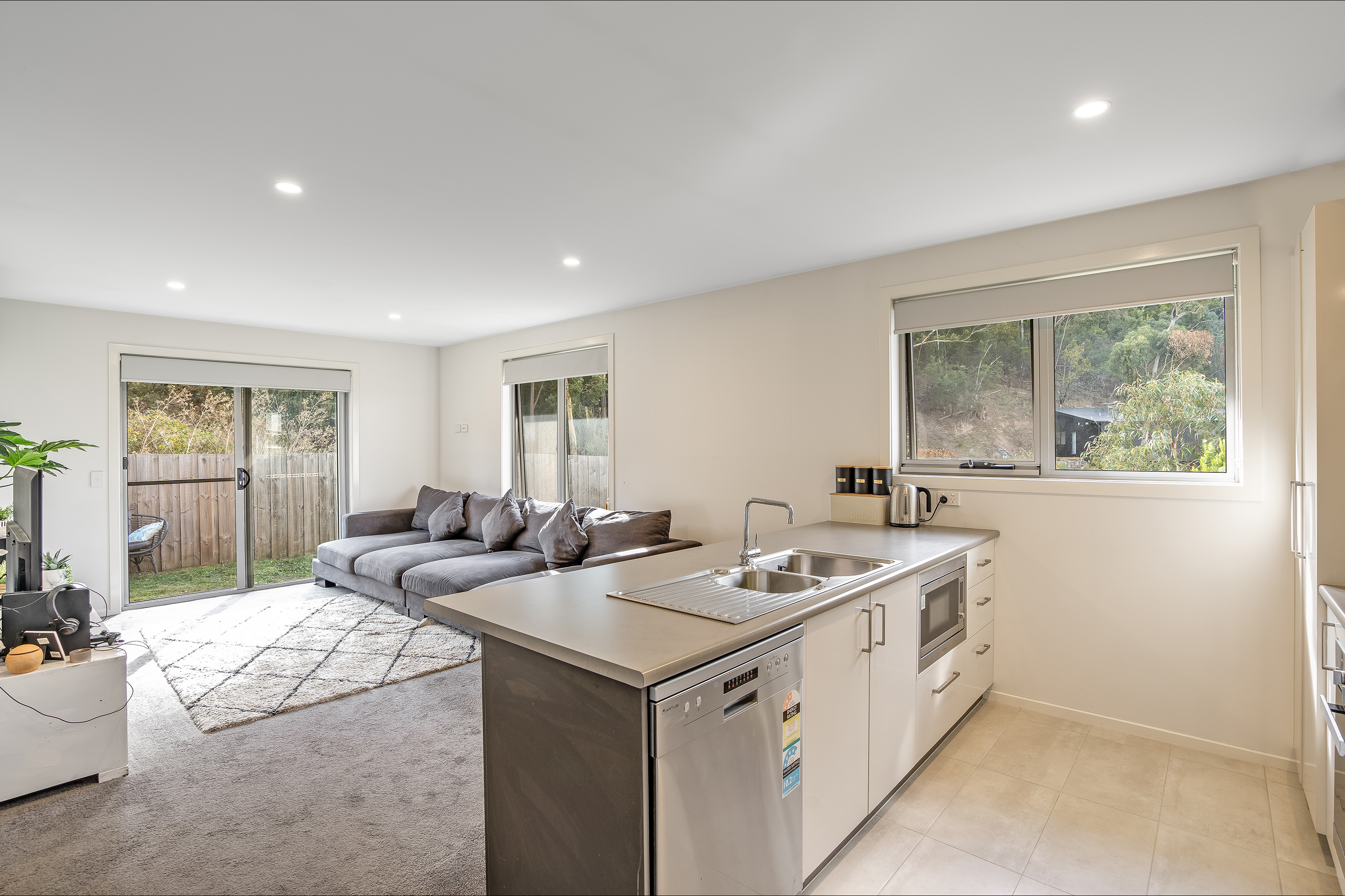Both bedrooms have built-in robes, and the open plan designed living area overlooks the secluded rear yard.