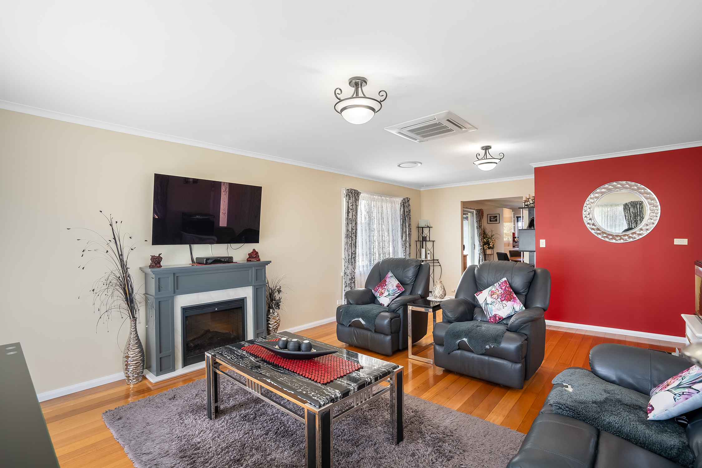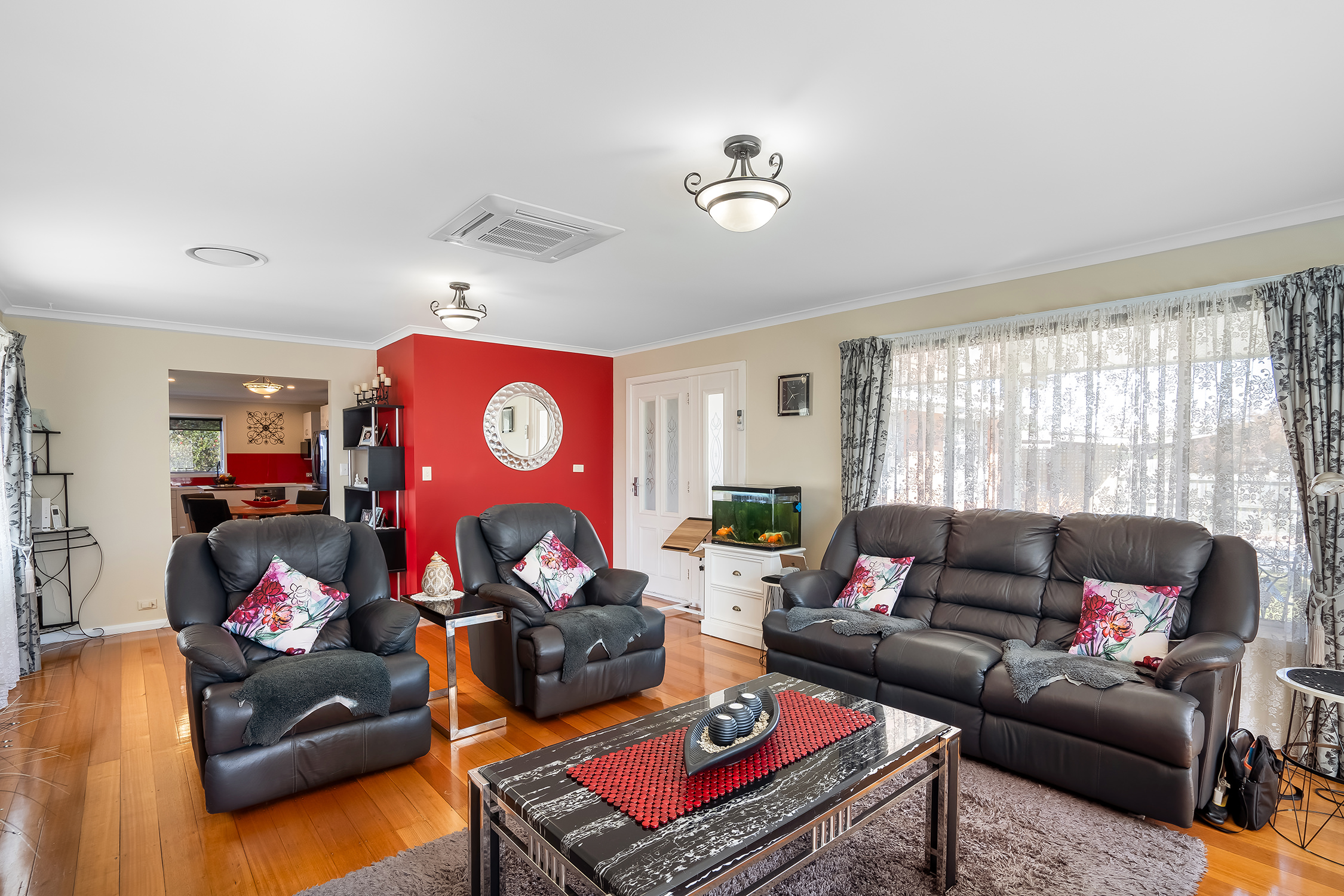 There are three bedrooms, two of which have built-in robes, providing ample storage space. The spacious master bedroom a generous walk-in robe or retreat, offering a private sanctuary within your own home. Space for the whole family.