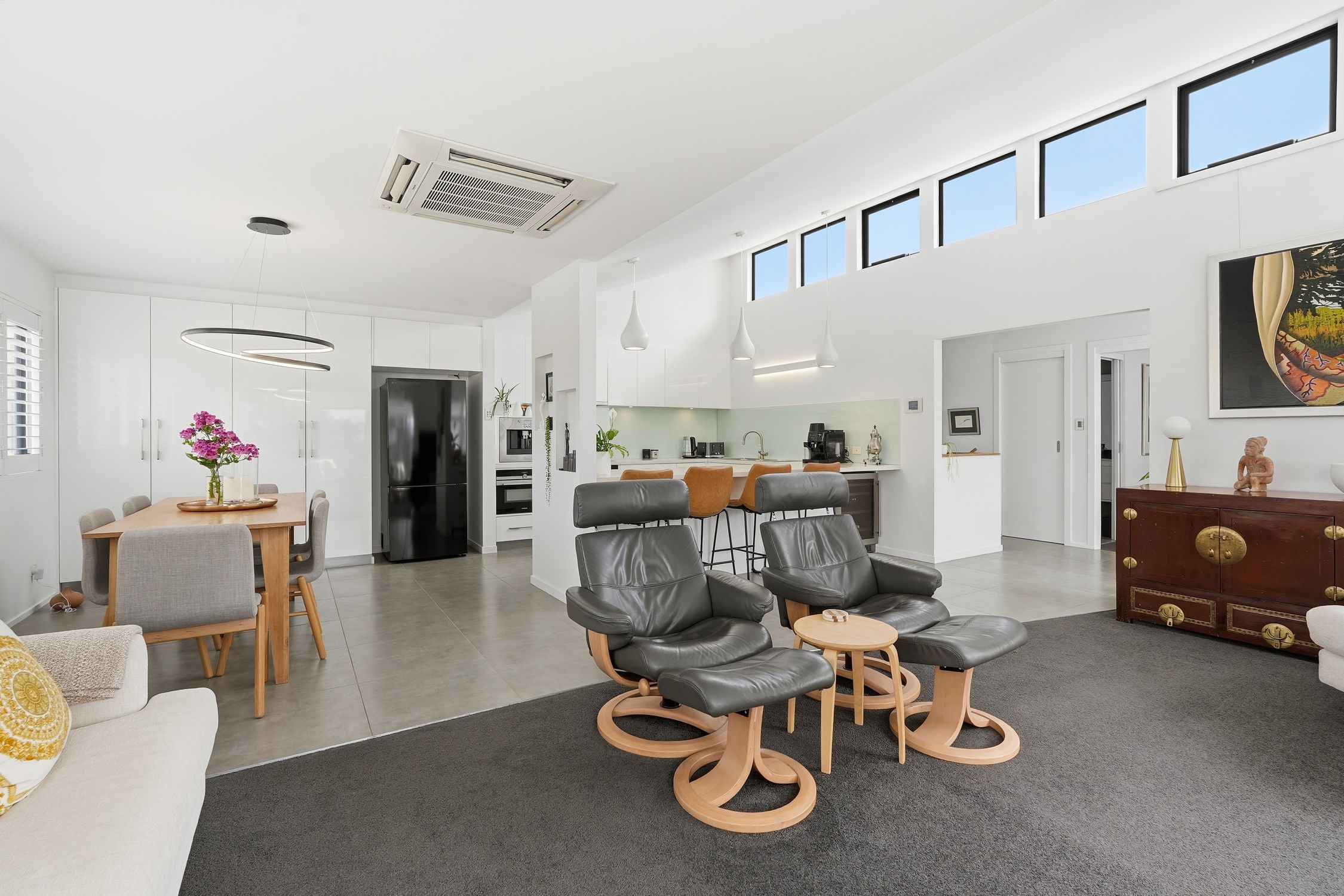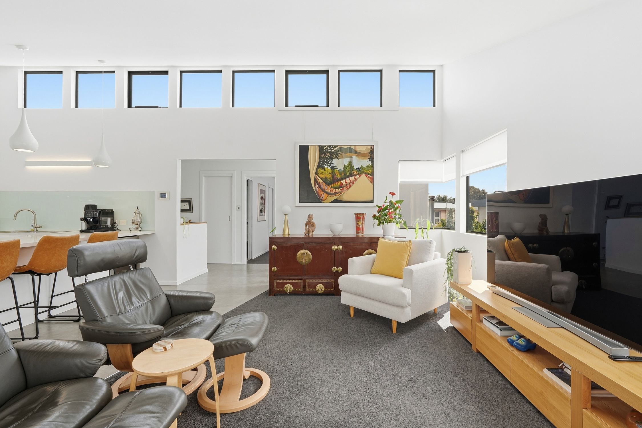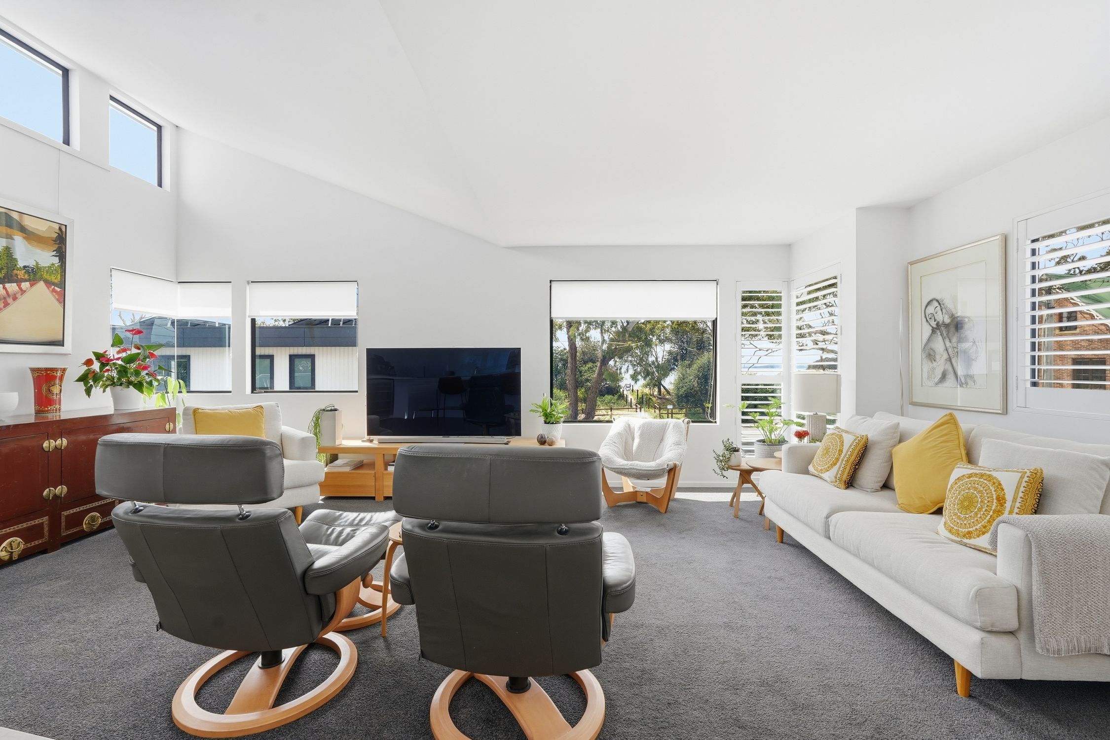 The ground floor living area flows seamlessly to the outdoor spaces, creating an ideal setting for entertaining or simply soaking up the coastal atmosphere.