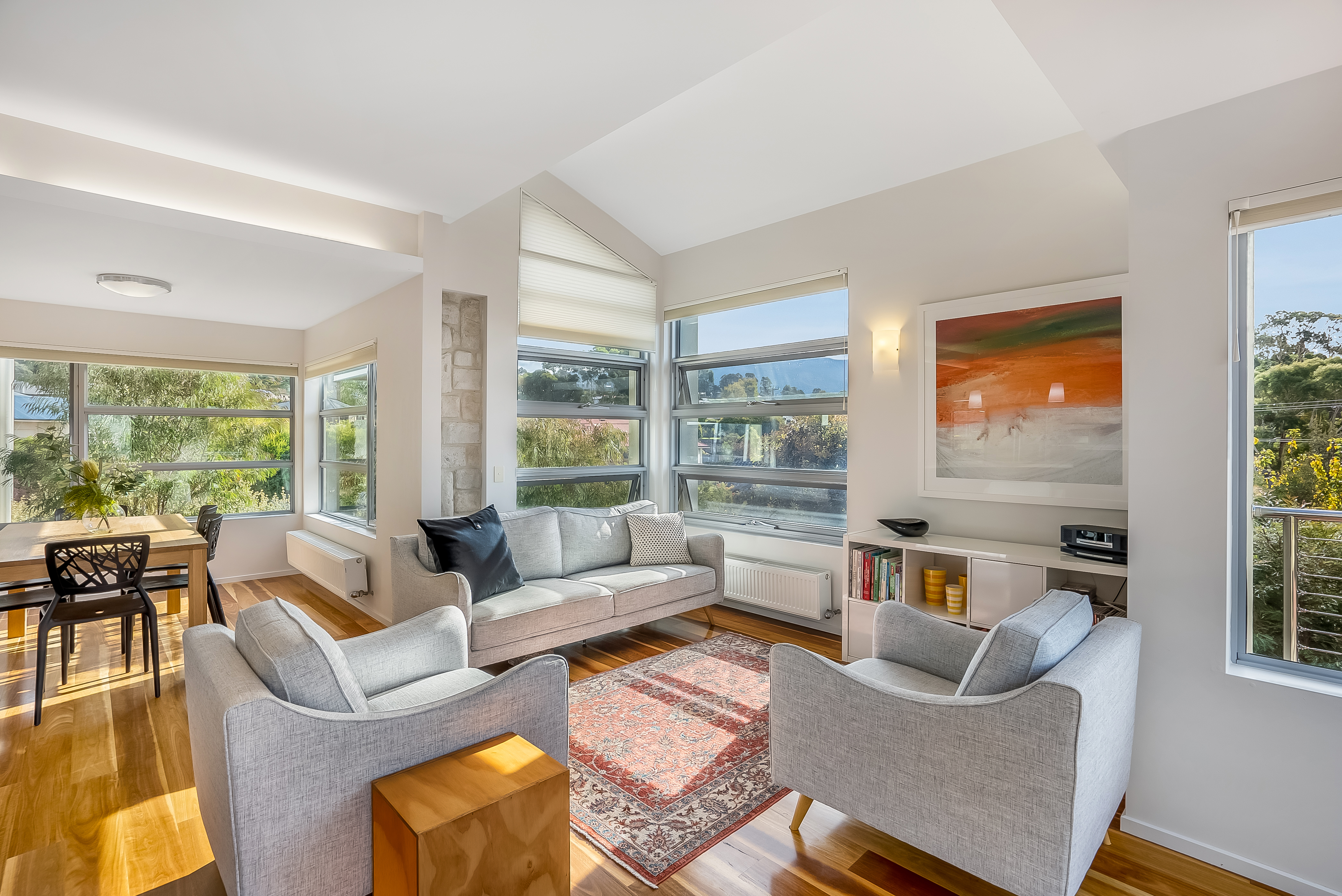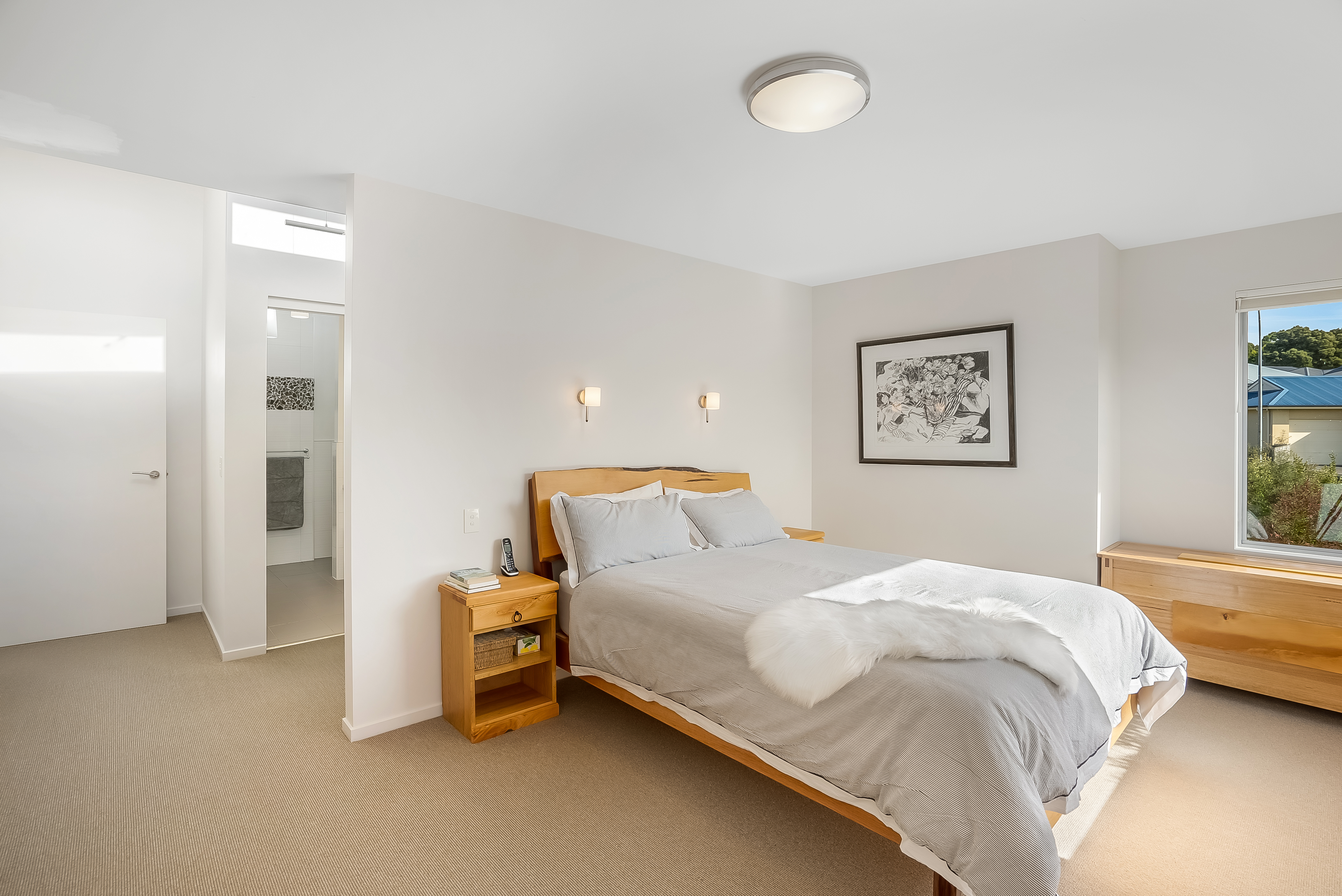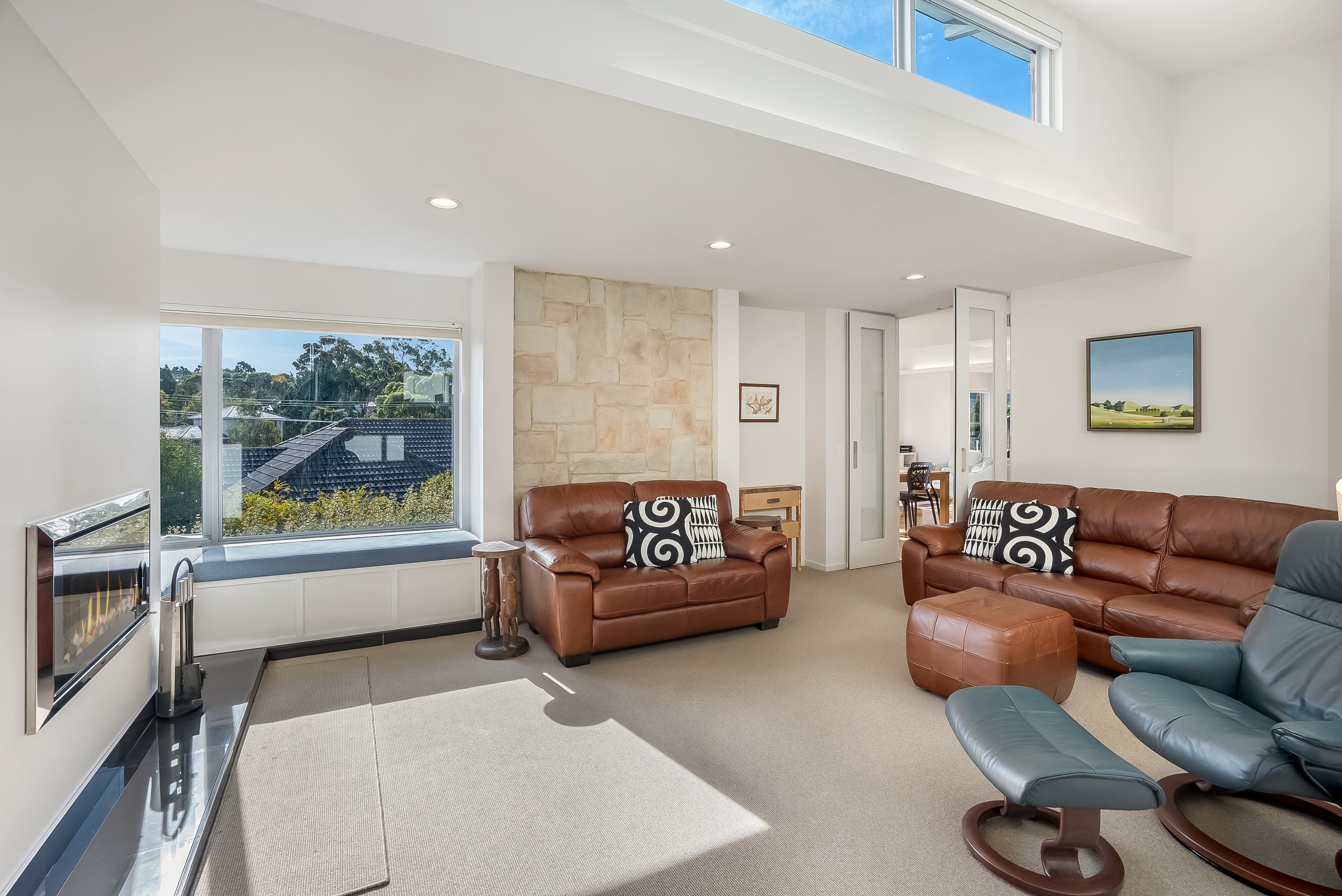 The quality of natural light is remarkable with feature & highlight windows positioned throughout. Designed and built on 'greensmart' principles, with all living areas and bedrooms facing north to take advantage of the winter sun while the solid masonry walls in the living areas act as a thermal mass that stores daytime warmth and releases it throughout the evenings. Full insulation, double-glazed windows and premium double honeycomb blinds maximise energy efficiency.
