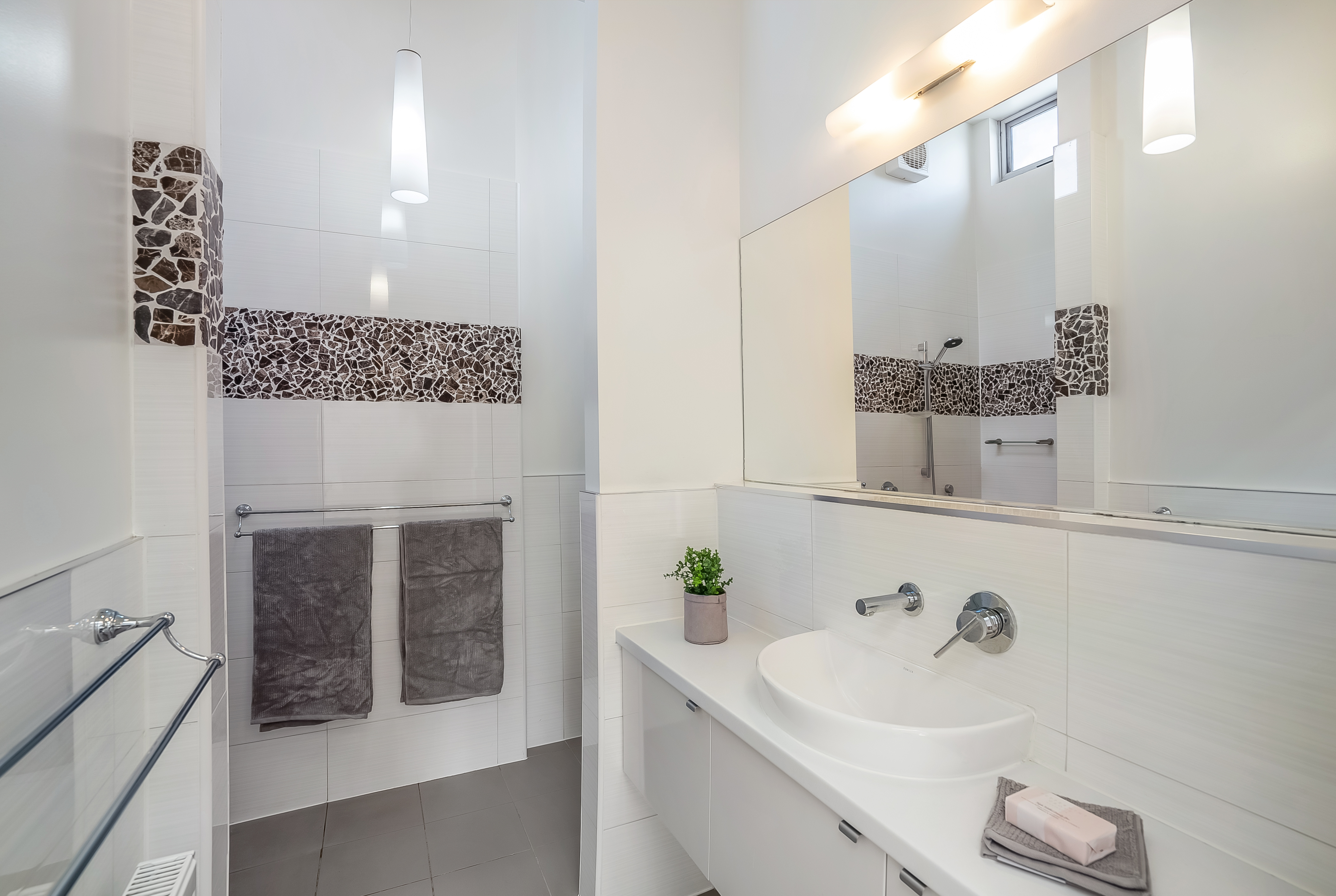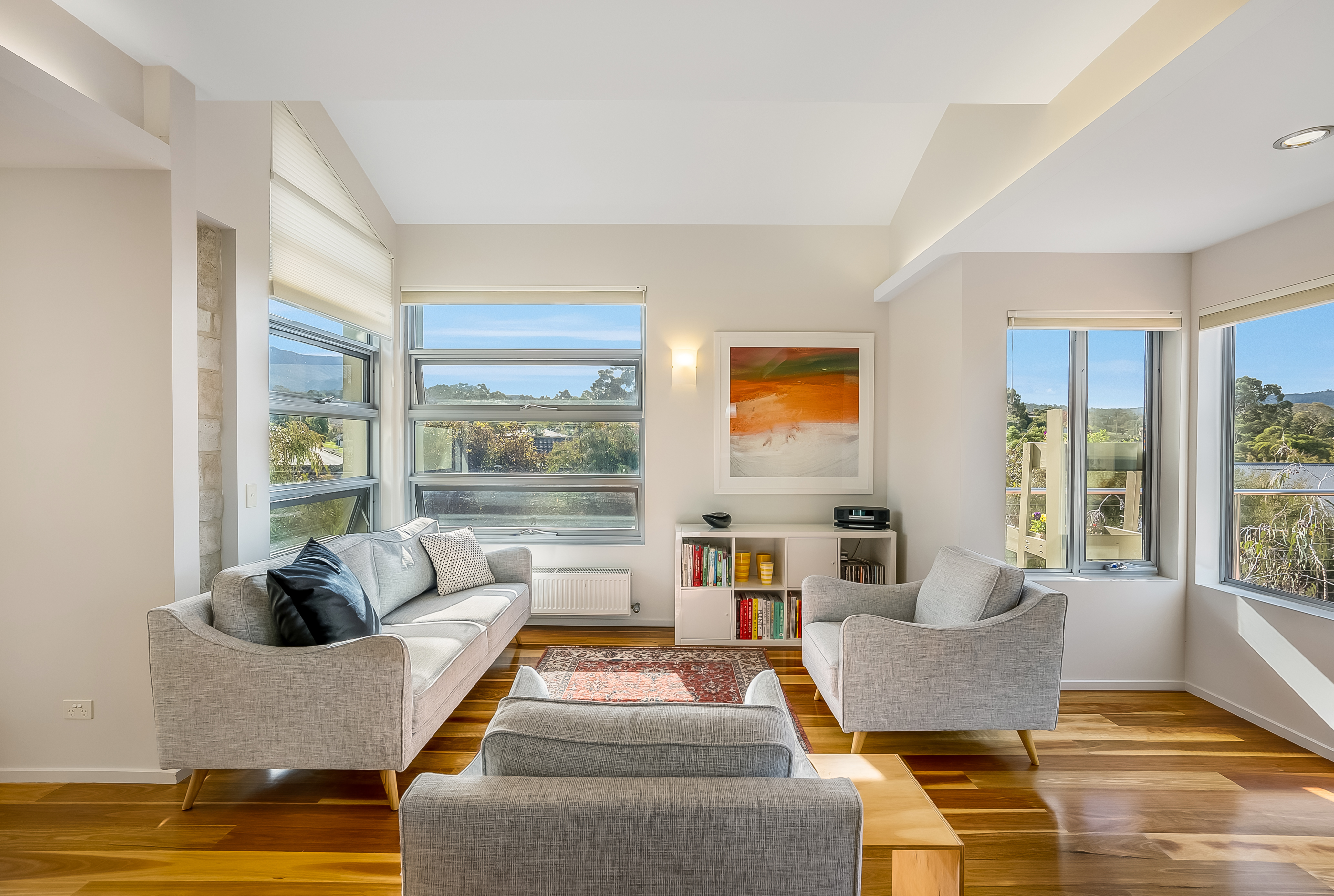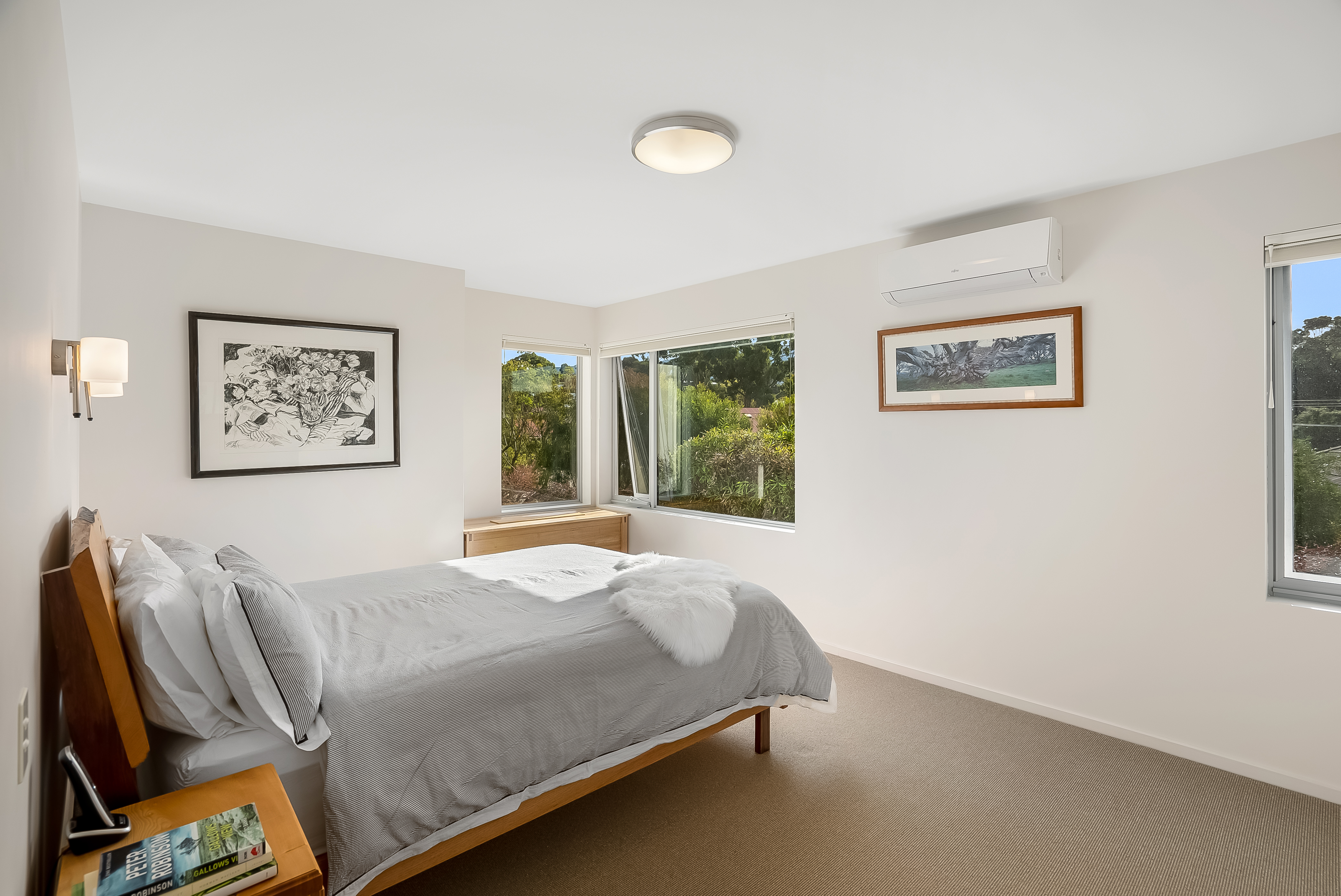 The quality of natural light is remarkable with feature & highlight windows positioned throughout. Designed and built on 'greensmart' principles, with all living areas and bedrooms facing north to take advantage of the winter sun while the solid masonry walls in the living areas act as a thermal mass that stores daytime warmth and releases it throughout the evenings. Full insulation, double-glazed windows and premium double honeycomb blinds maximise energy efficiency.