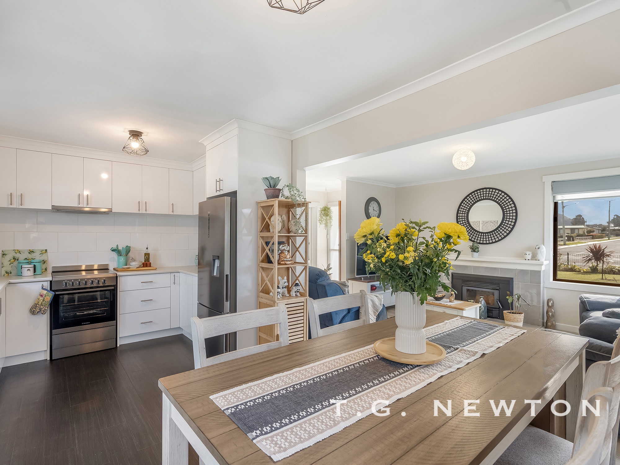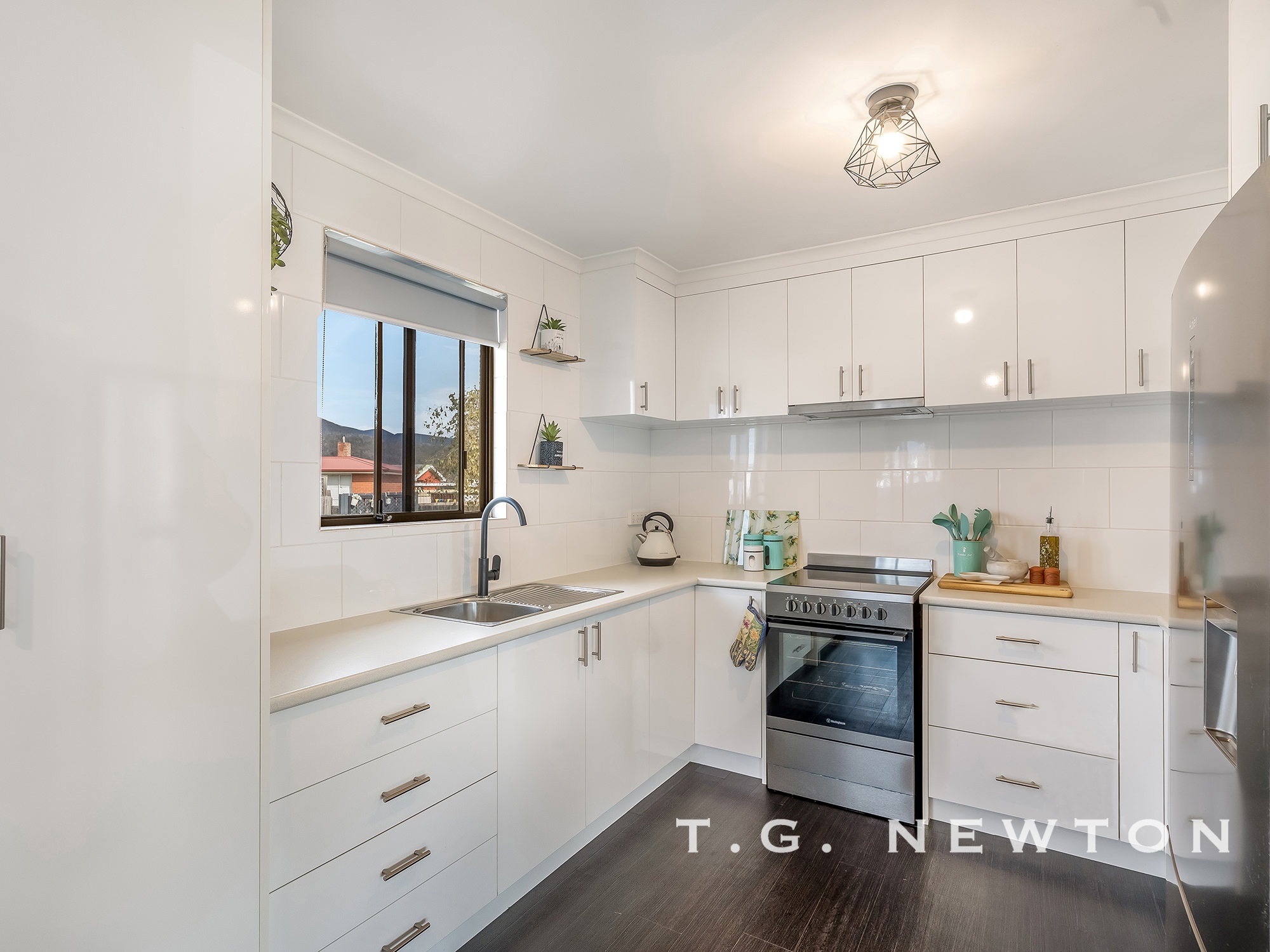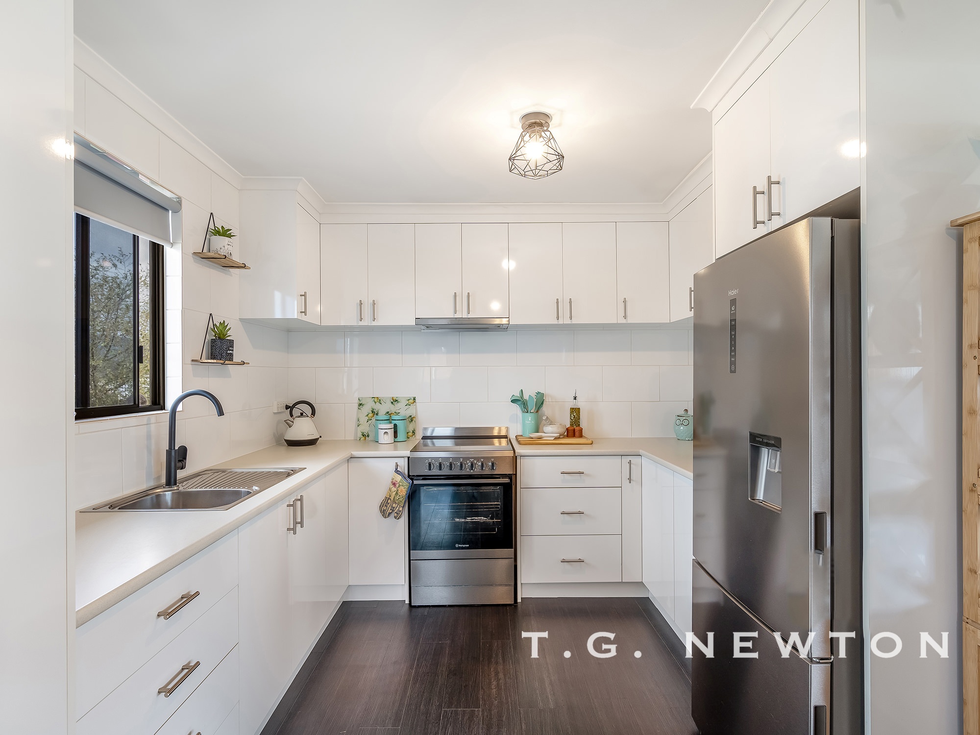 The gourmet contemporary kitchen offers plenty of storage options, benchtop space and overlooks the rear yard.