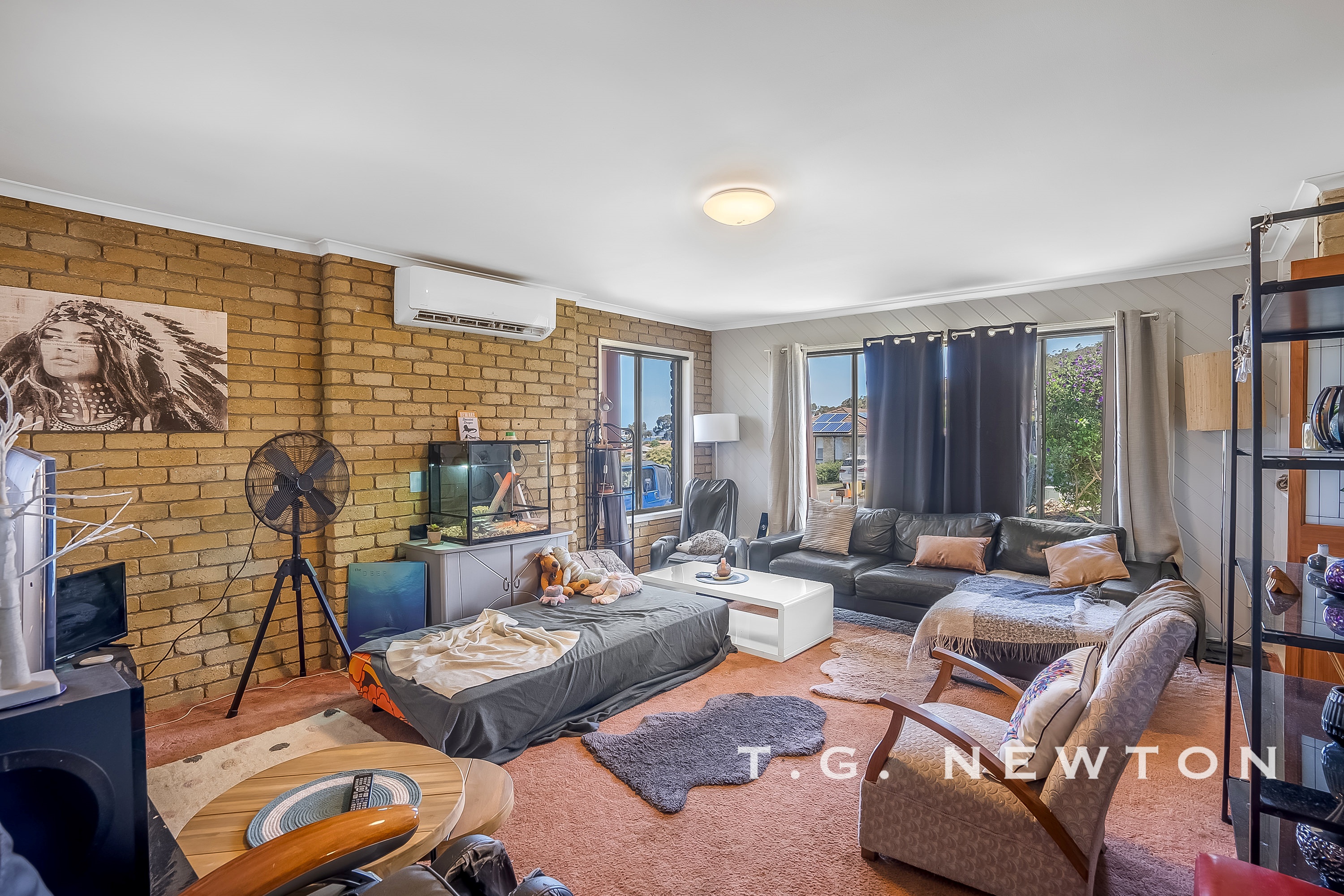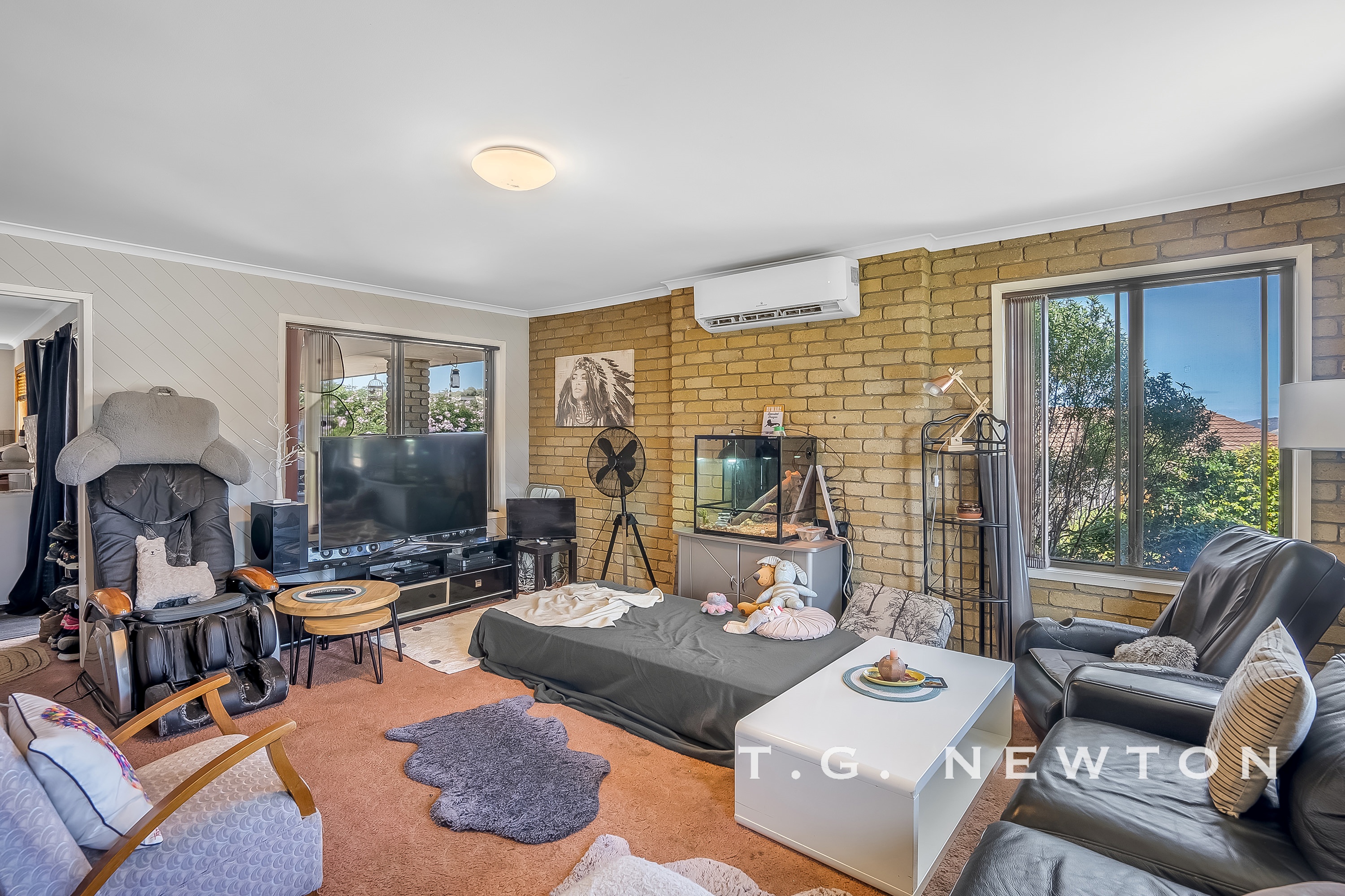 Fantastic outlook over the river Derwent, the home is set in a quiet pocket on a relatively flat block with level entry. Comprising three bedrooms, a large living space and a garage/bar area that is ideal for use as a man cave. This one has something for every member of the family.