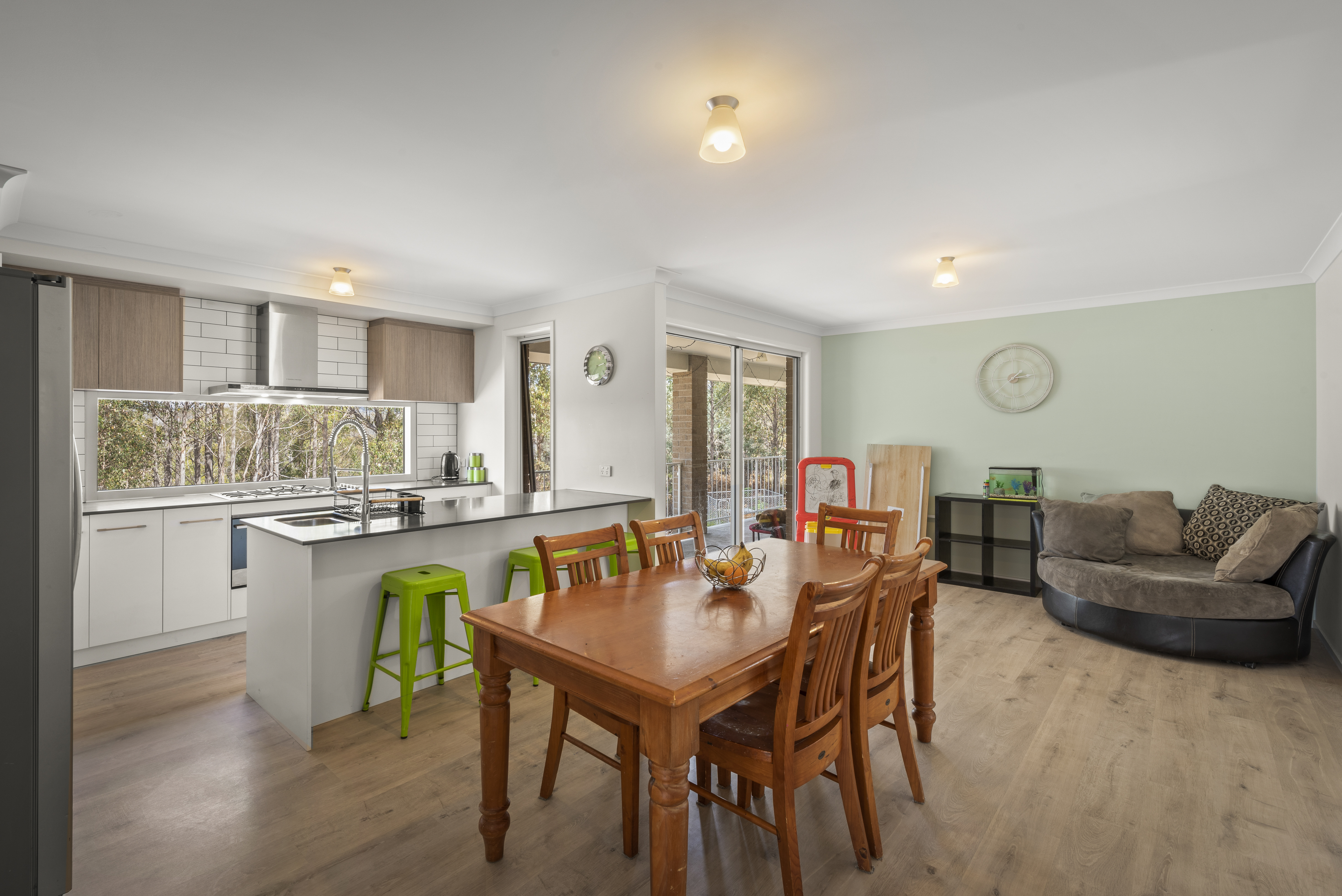 A perfect retreat for families and nature lovers, this beautifully designed home offers four spacious bedrooms and two bathrooms, with plenty of parking space to accommodate all your needs. The master bedroom features a private ensuite, walk in robe providing a serene and comfortable escape. One of the standout features is the open-plan living area, which seamlessly connects the kitchen and dining areas, creating an inviting flow for both everyday living and entertaining. A separate lounge adds to the home's warmth and charm, providing the perfect space for relaxation. The modern kitchen is a dream for any home cook, equipped with high-quality appliances, abundant storage, and a functional layout that allows you to prepare meals while engaging with family and friends. Whether you're hosting a dinner party or enjoying a quiet meal at home, this space is designed with both style and convenience in mind.