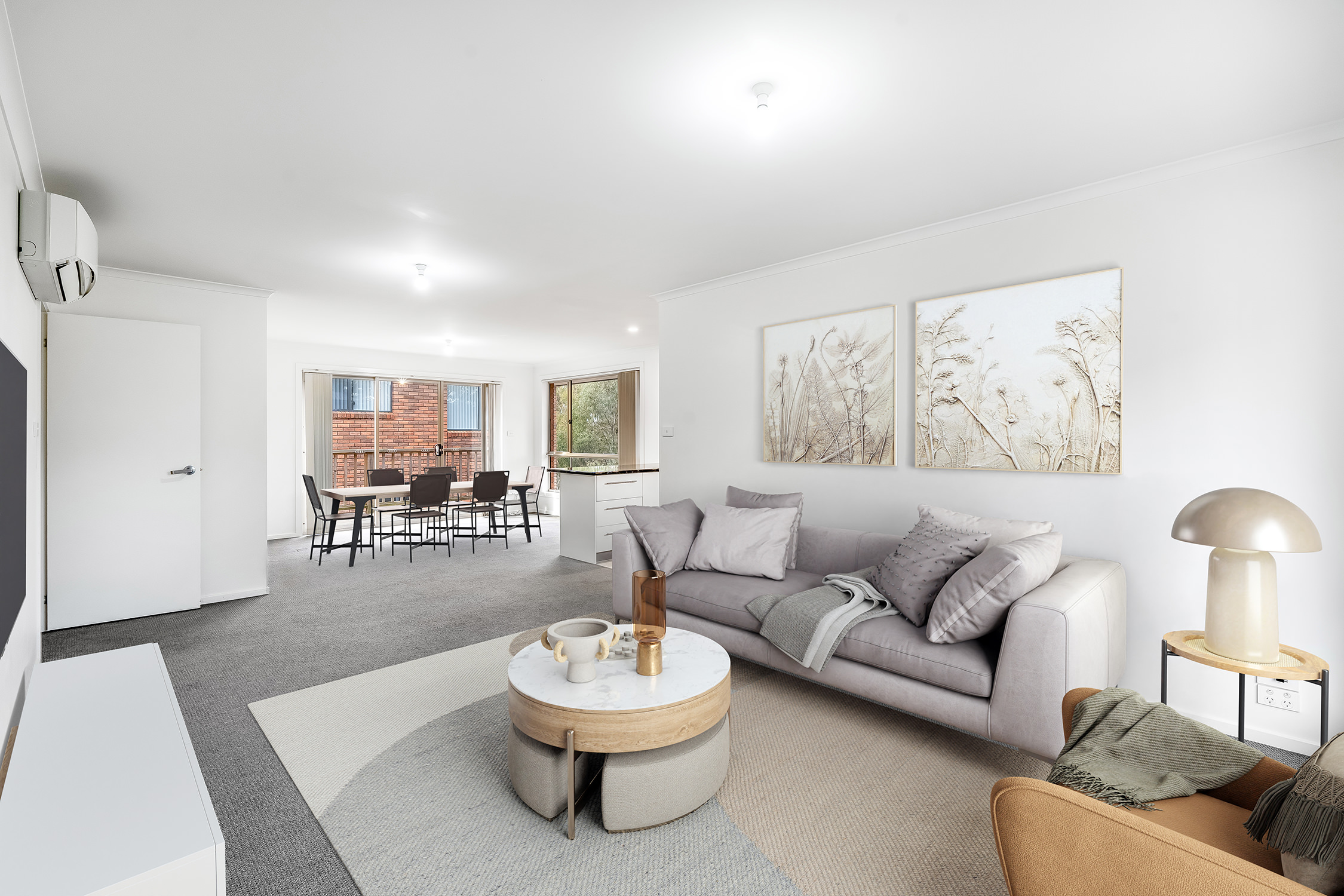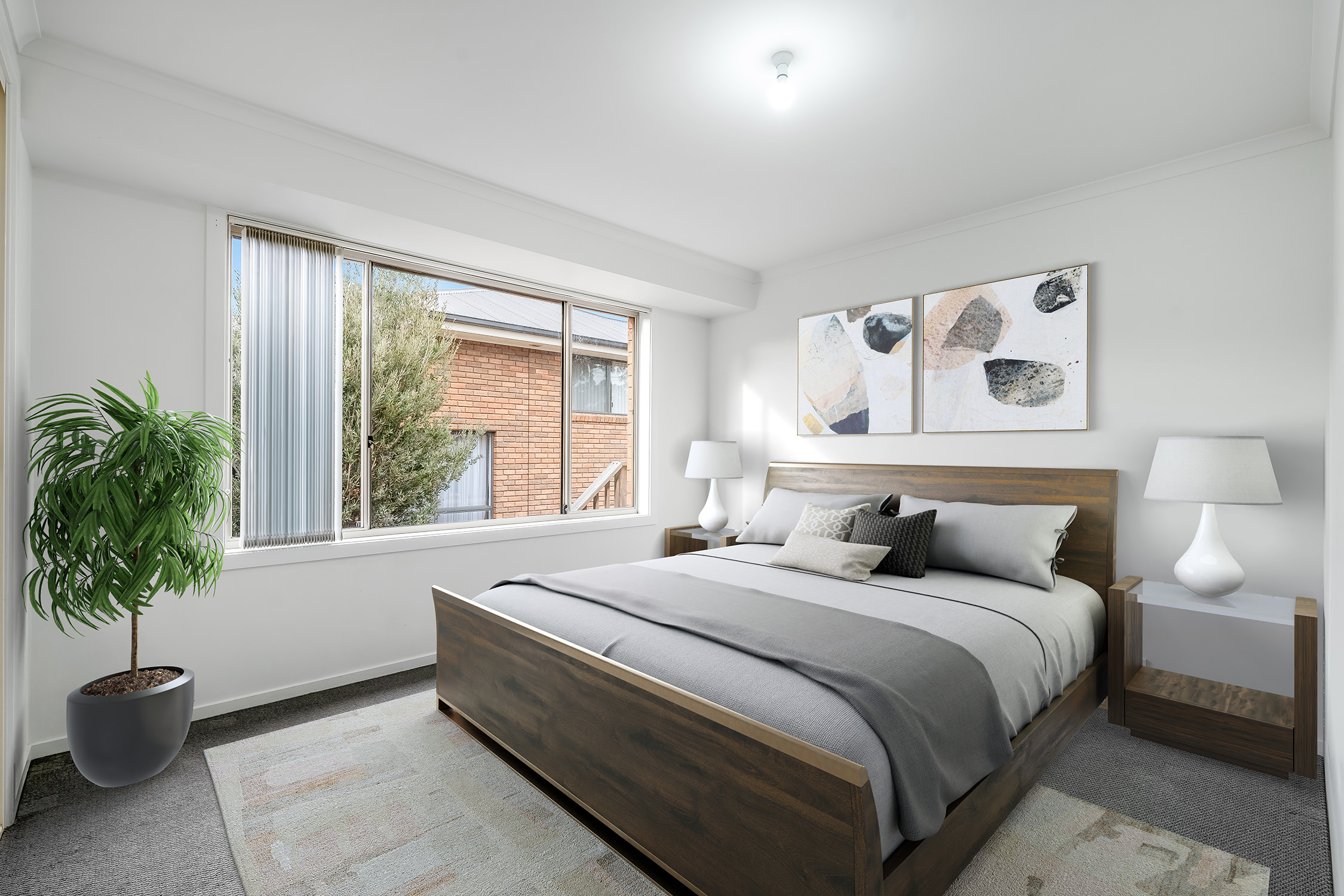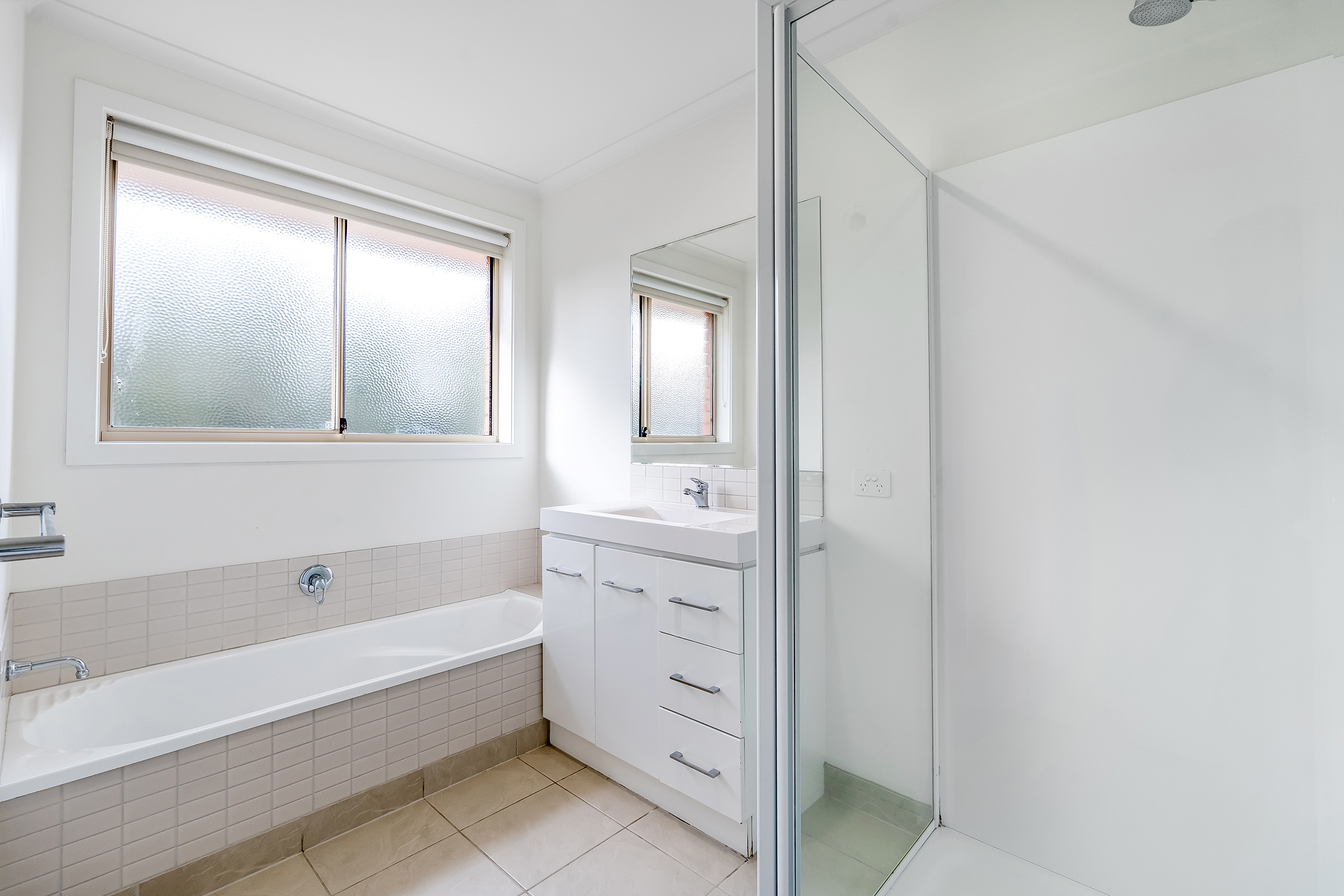 The bathroom is elegantly designed with a shower, bath, and vanity, providing a relaxing retreat for your daily routines. All three bedrooms are well-proportioned and come with built-in robes, offering plenty of storage space for your wardrobe and personal items.