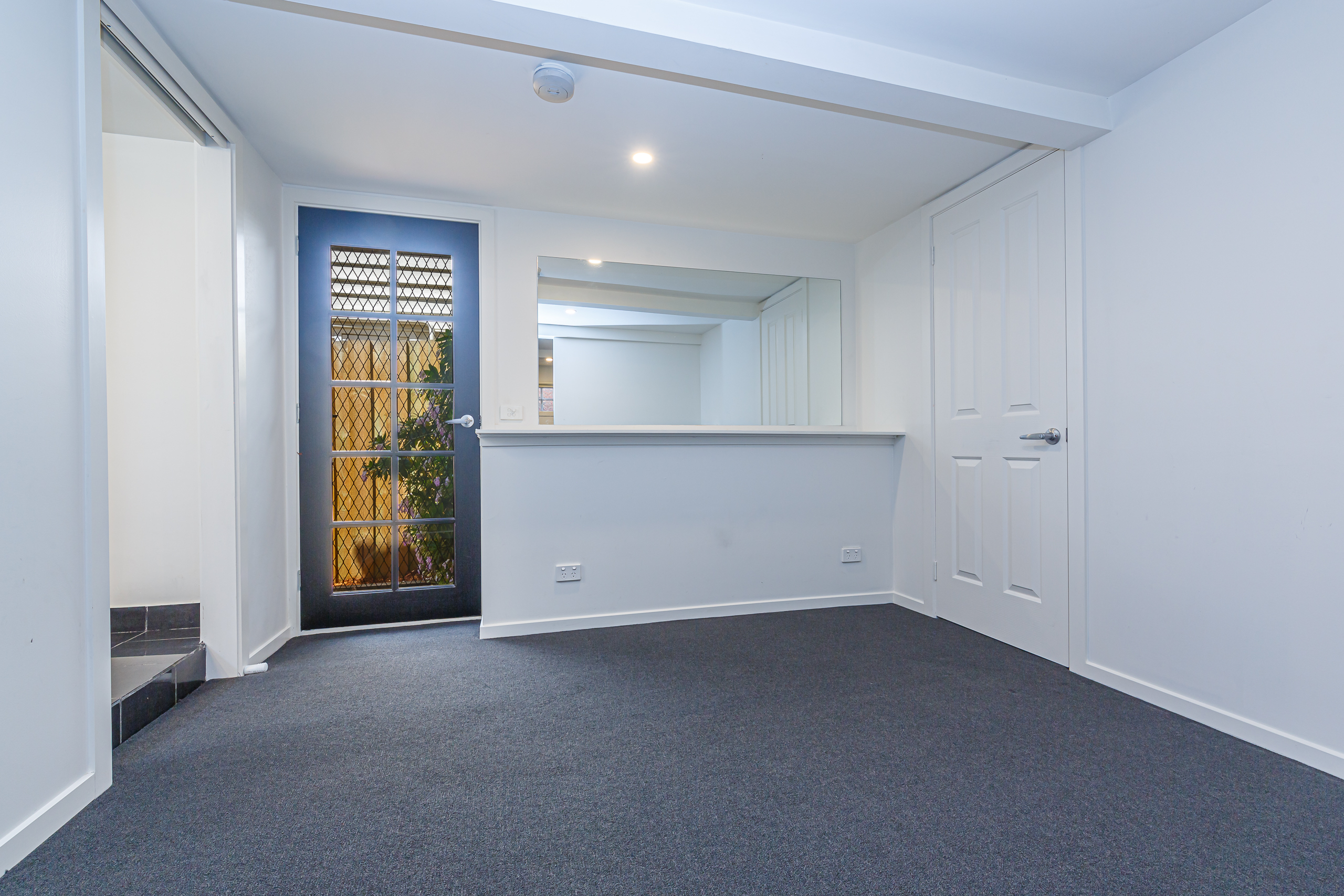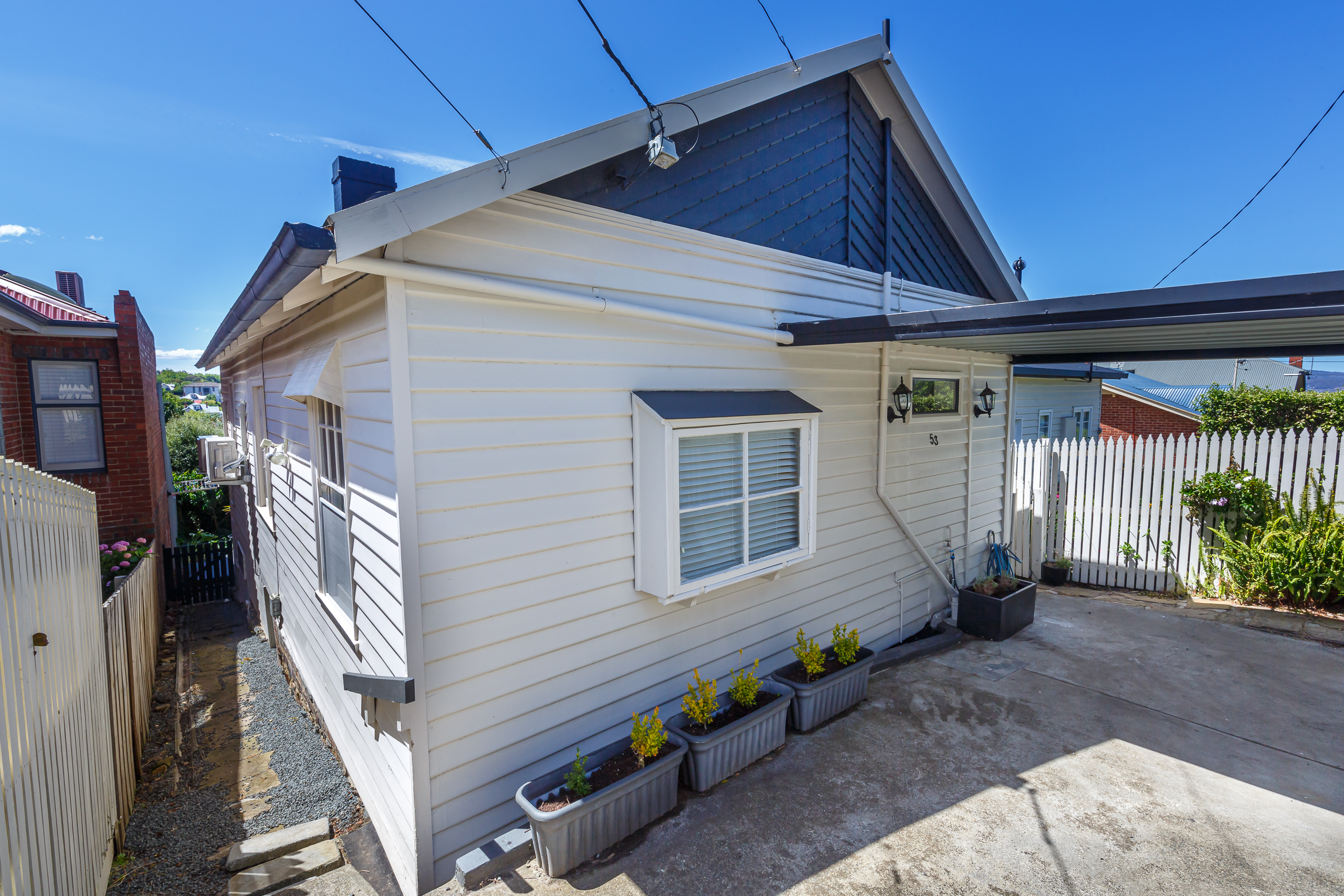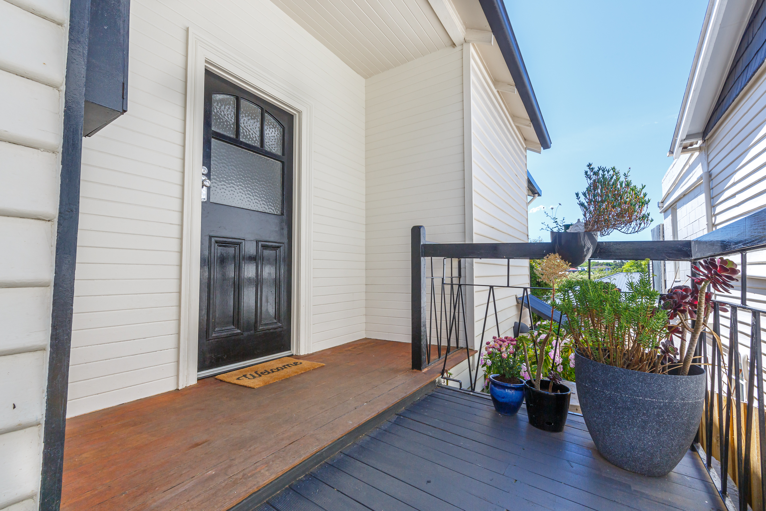 The stunning spiral staircase to the lower level reveals a second bedroom and a sitting room. There is also a second modern bathroom in addition to the laundry. The back door opens onto the timber deck with shade sail and rear yard with garden beds. There is a second courtyard in the front garden plus a small off-street parking space.