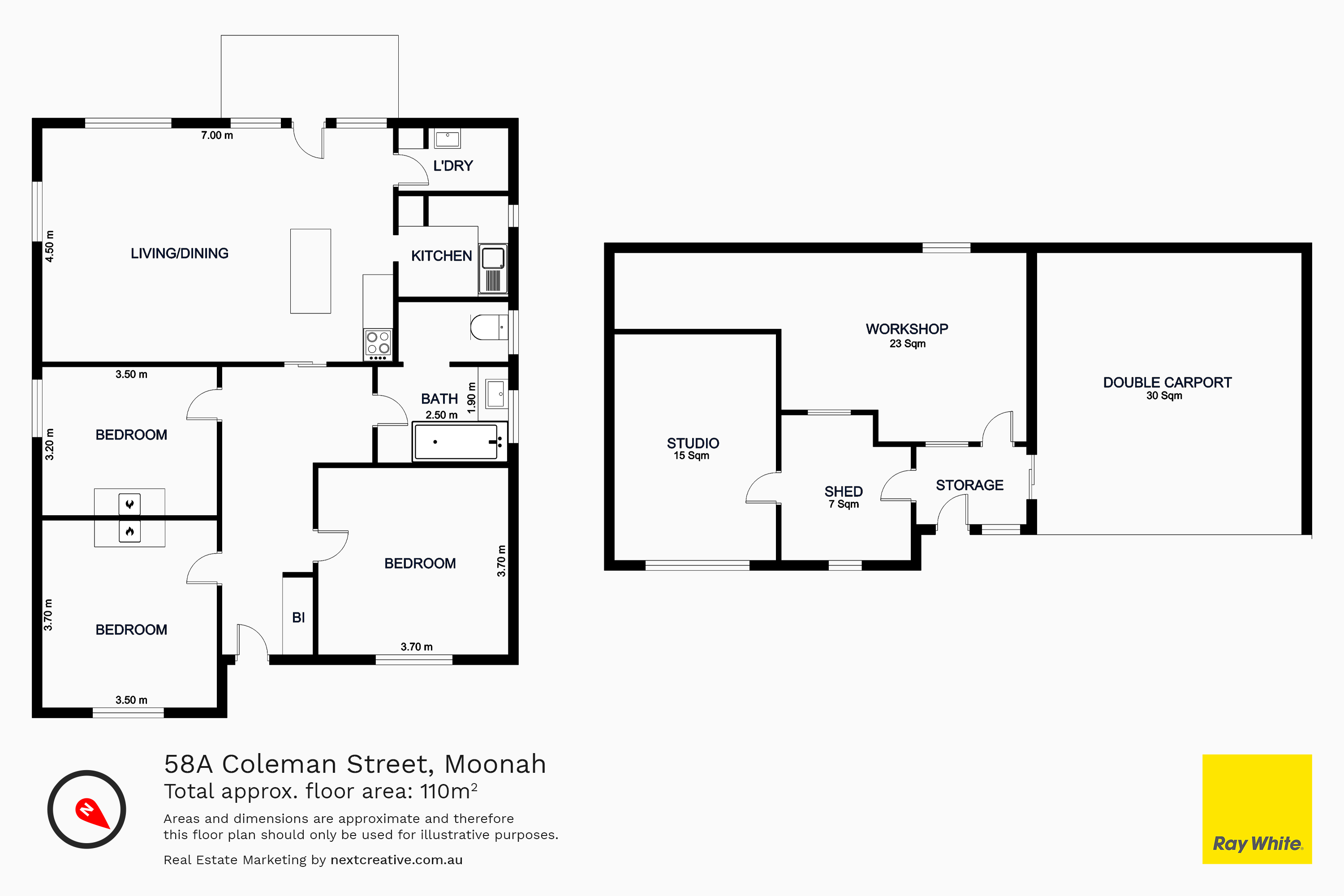 There is a double carport at the back and a studio that does need some TLC but would make a fantastic workshop of studio space.