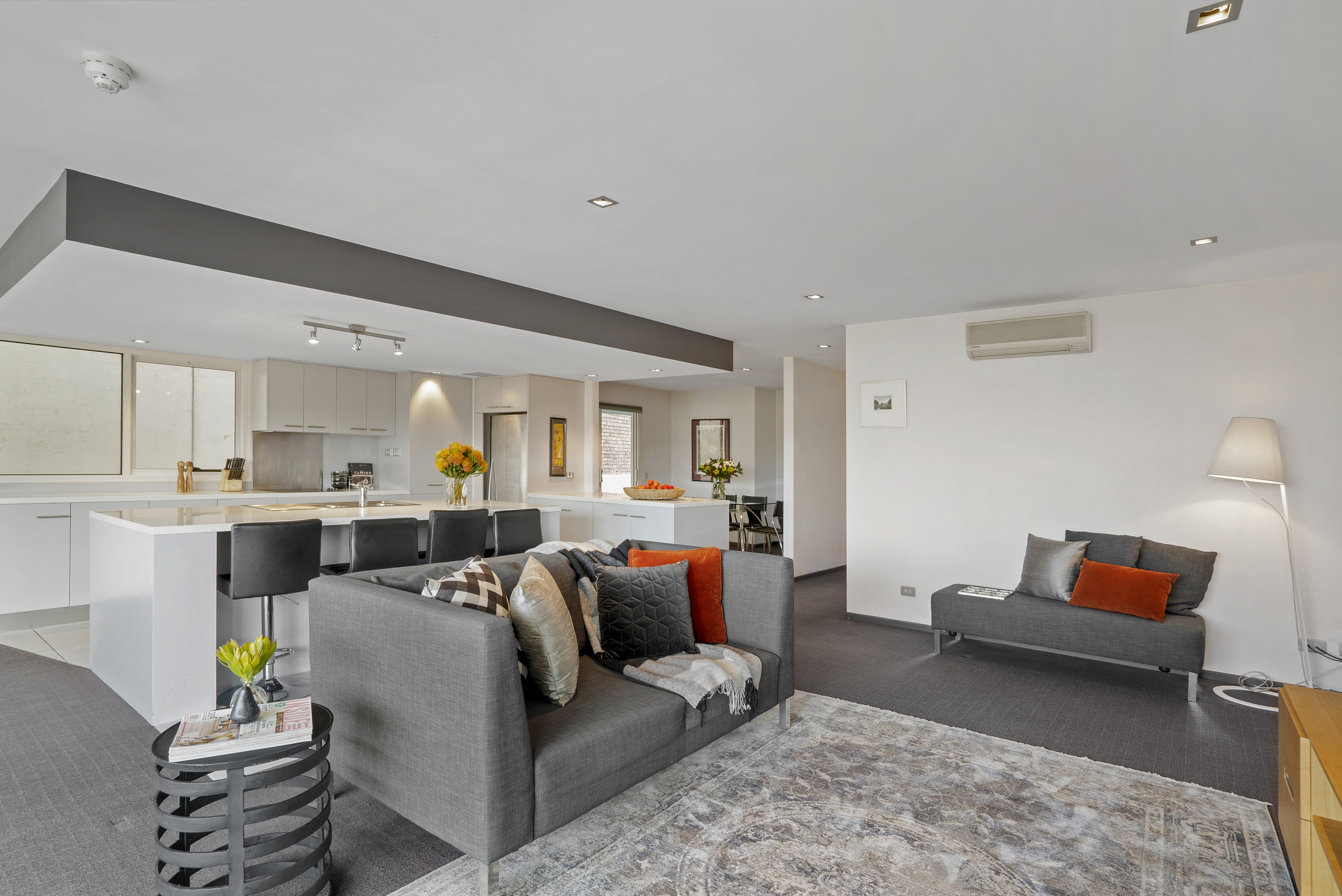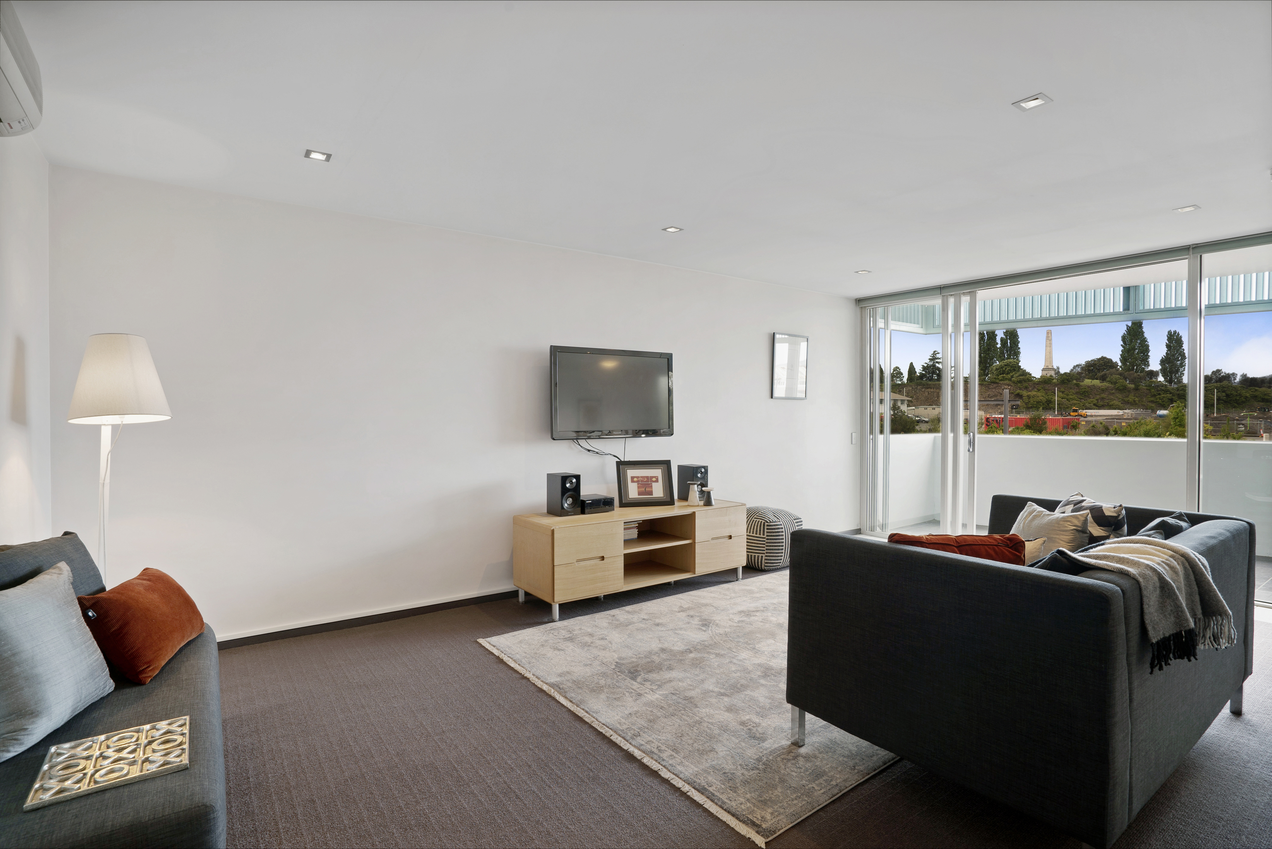 With a contemporary and stylish design, the apartment creates an immediate impression of space and light throughout. Generous open plan living features a full-sized kitchen, allowing for the creation of culinary delights without compromise and spacious living that flows out onto two separate balconies, ideal for alfresco dining and entertaining. This private apartment is ideally positioned with lovely views towards Macquarie Point and the Cenotaph.