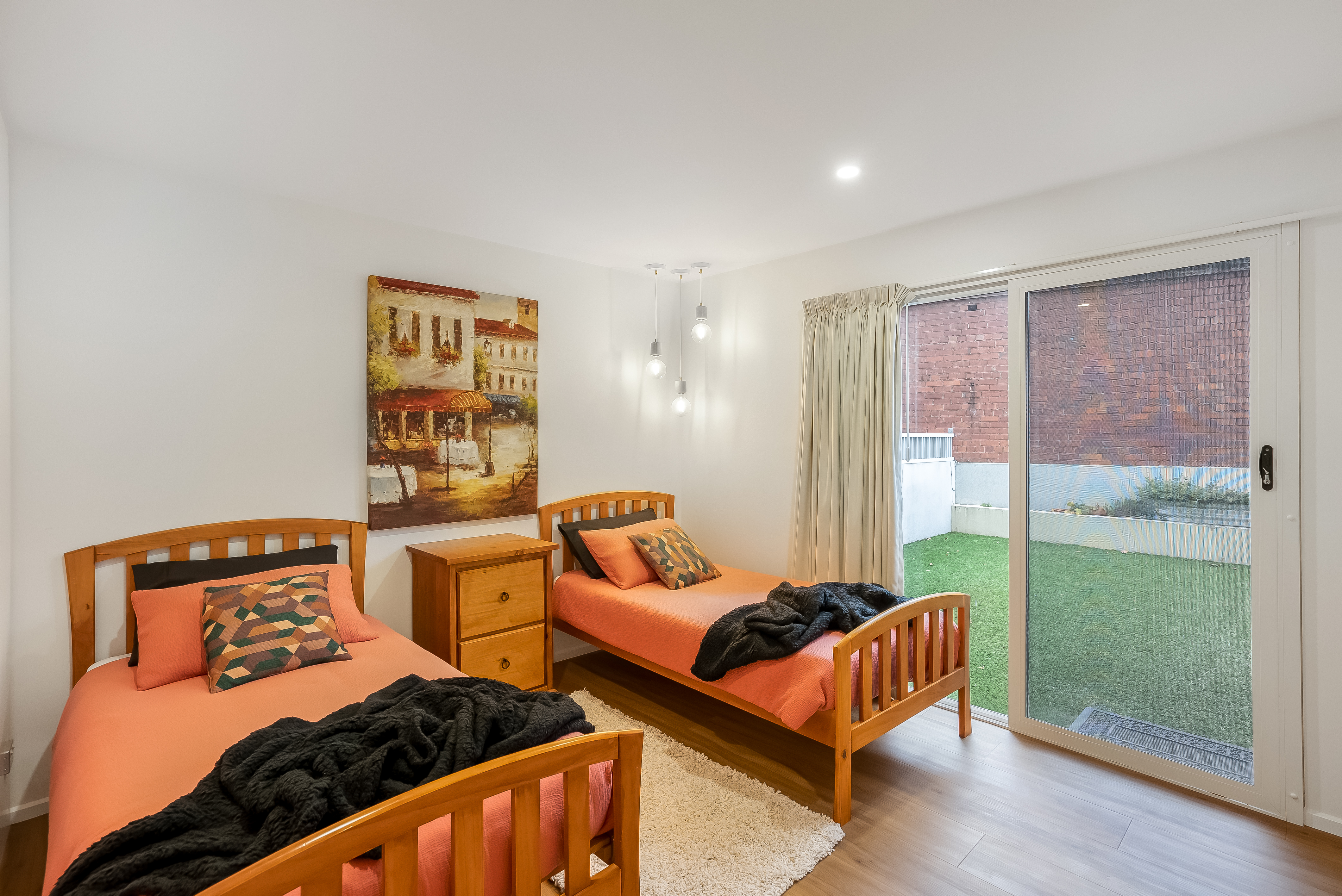 With a contemporary and stylish design, this apartment offers an ultra-generous and private outdoor space which makes this a shining example of downsizing, combining low maintenance living without compromise of outdoor space. Generous open plan living features a full-sized kitchen with plenty of bench, cupboard and drawer space plus premium appliances including twin ovens, gas cooktop and dishwasher. The spacious living area flows out to the covered outdoor area that effectively extends the interior footprint and is ideal for alfresco dining and entertaining year round.