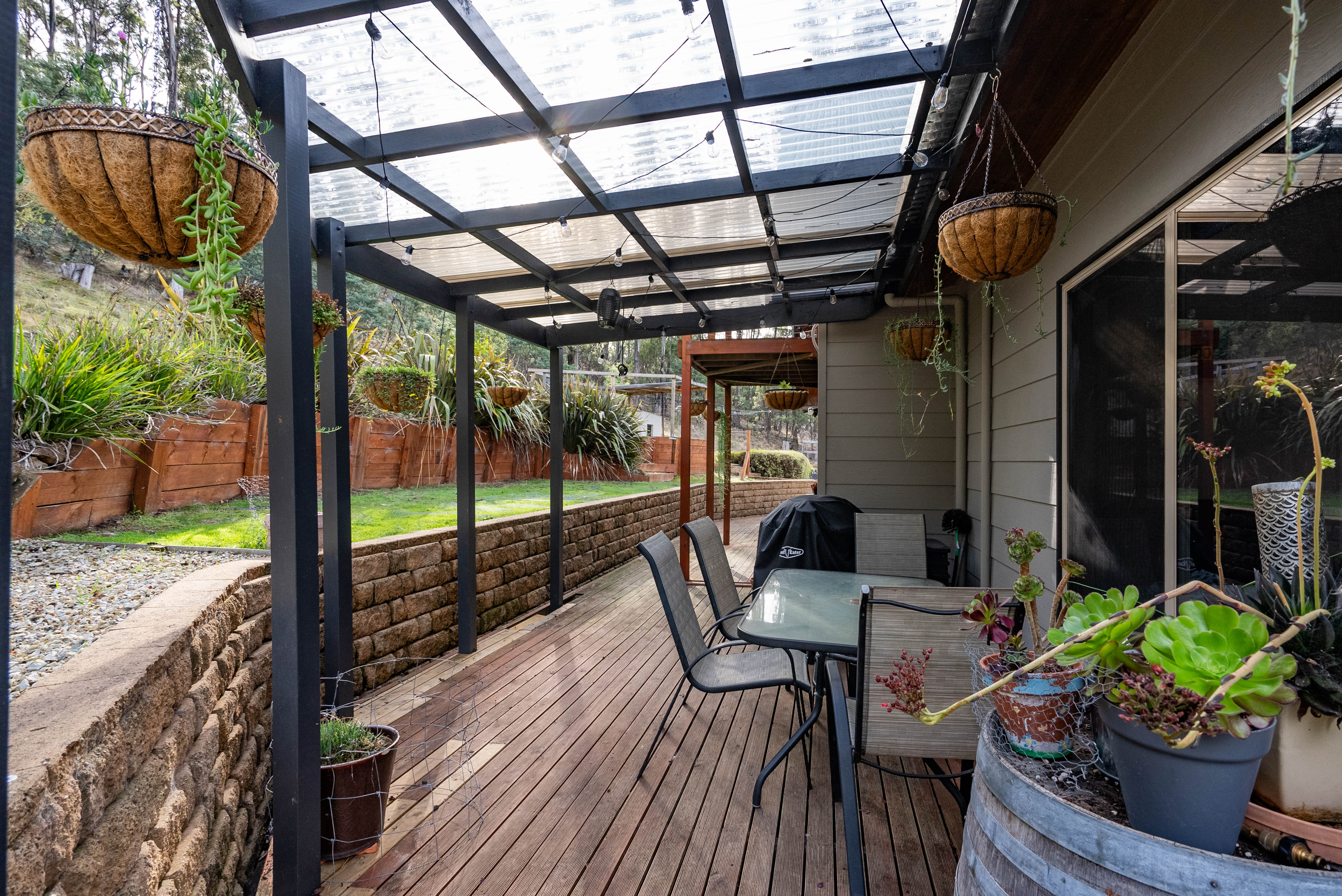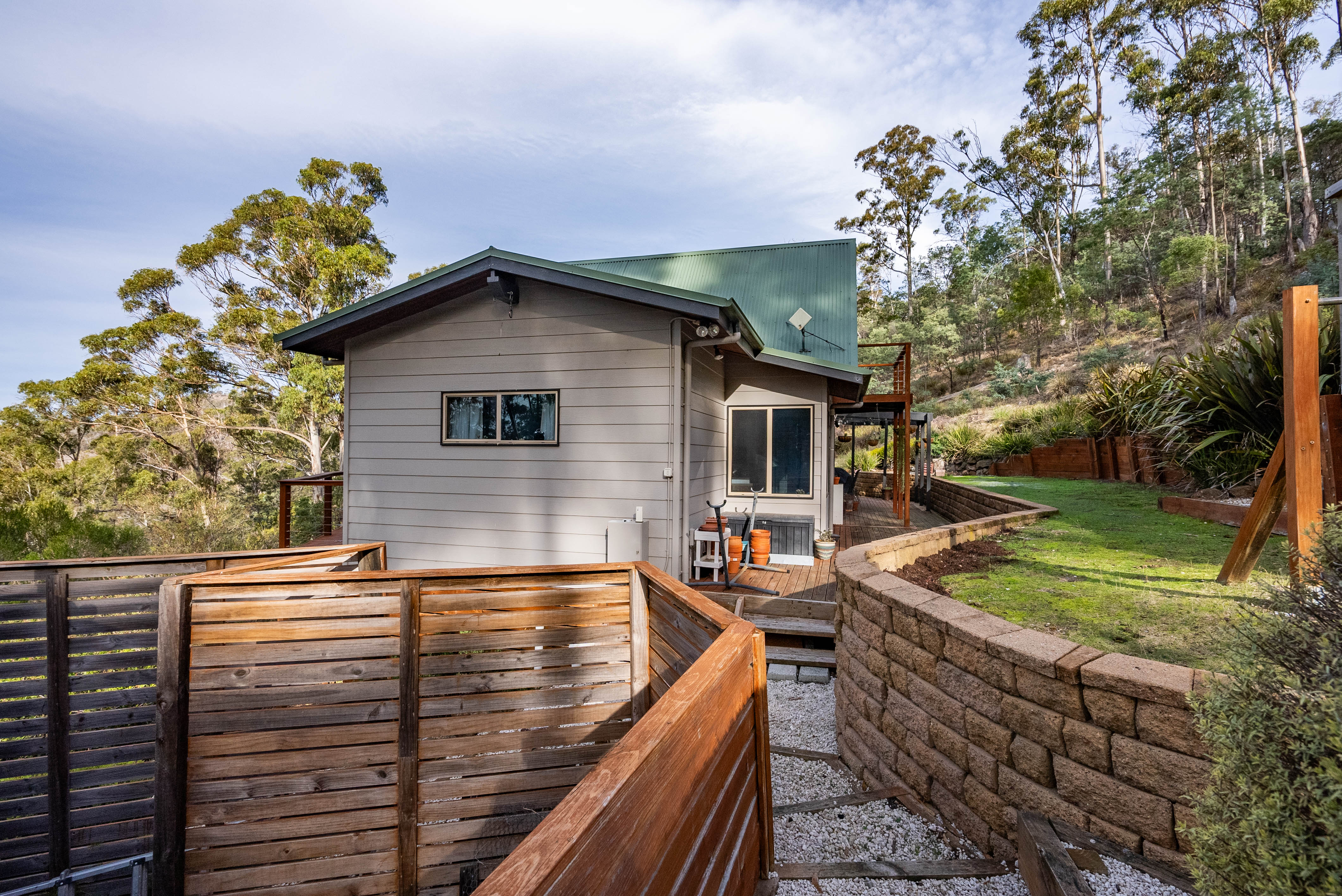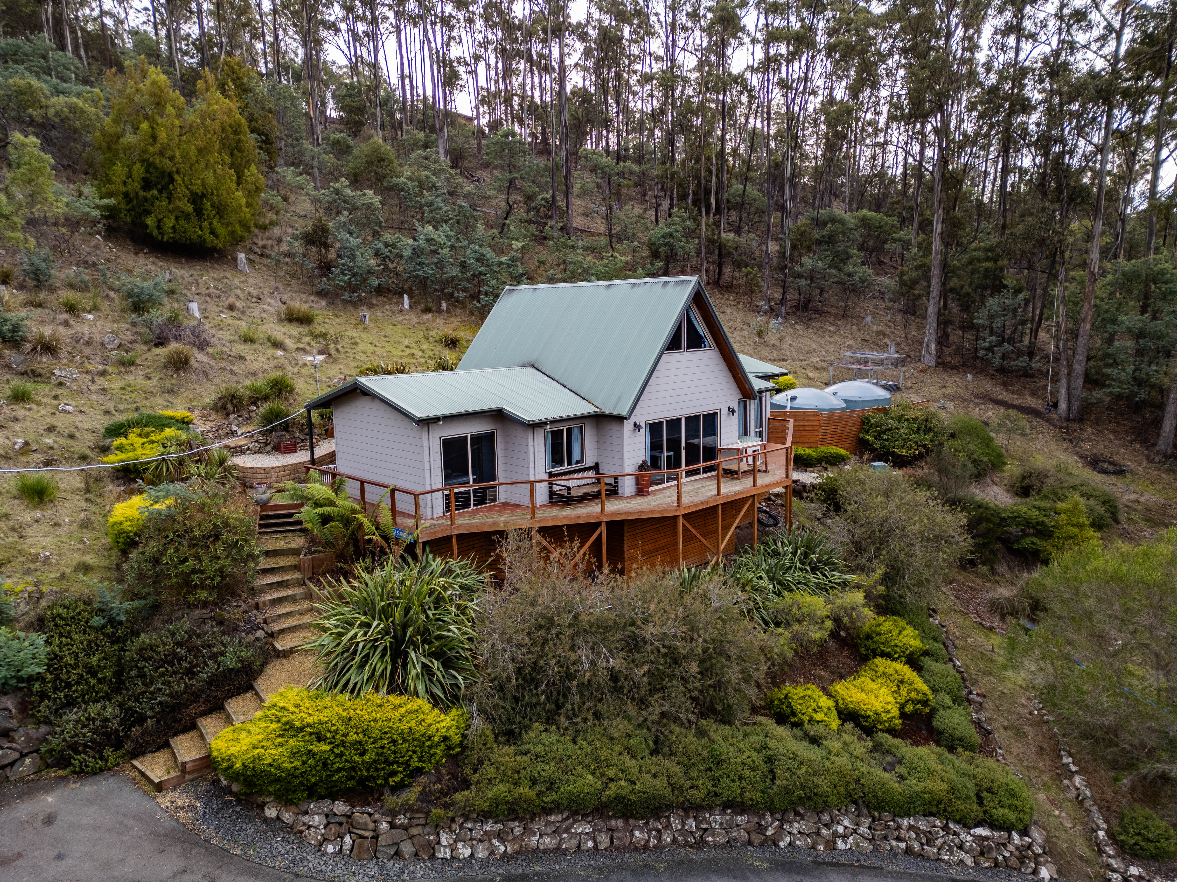 As you step onto the front deck, you'll be captivated by the stunning panoramic views that stretch out before you. Whether you're enjoying a morning coffee or unwinding in the evening, the scenery is sure to impress. The property is thoughtfully landscaped around the house, creating an inviting and well-maintained garden, while the remainder of the land retains its natural bushland, offering a peaceful and private environment.