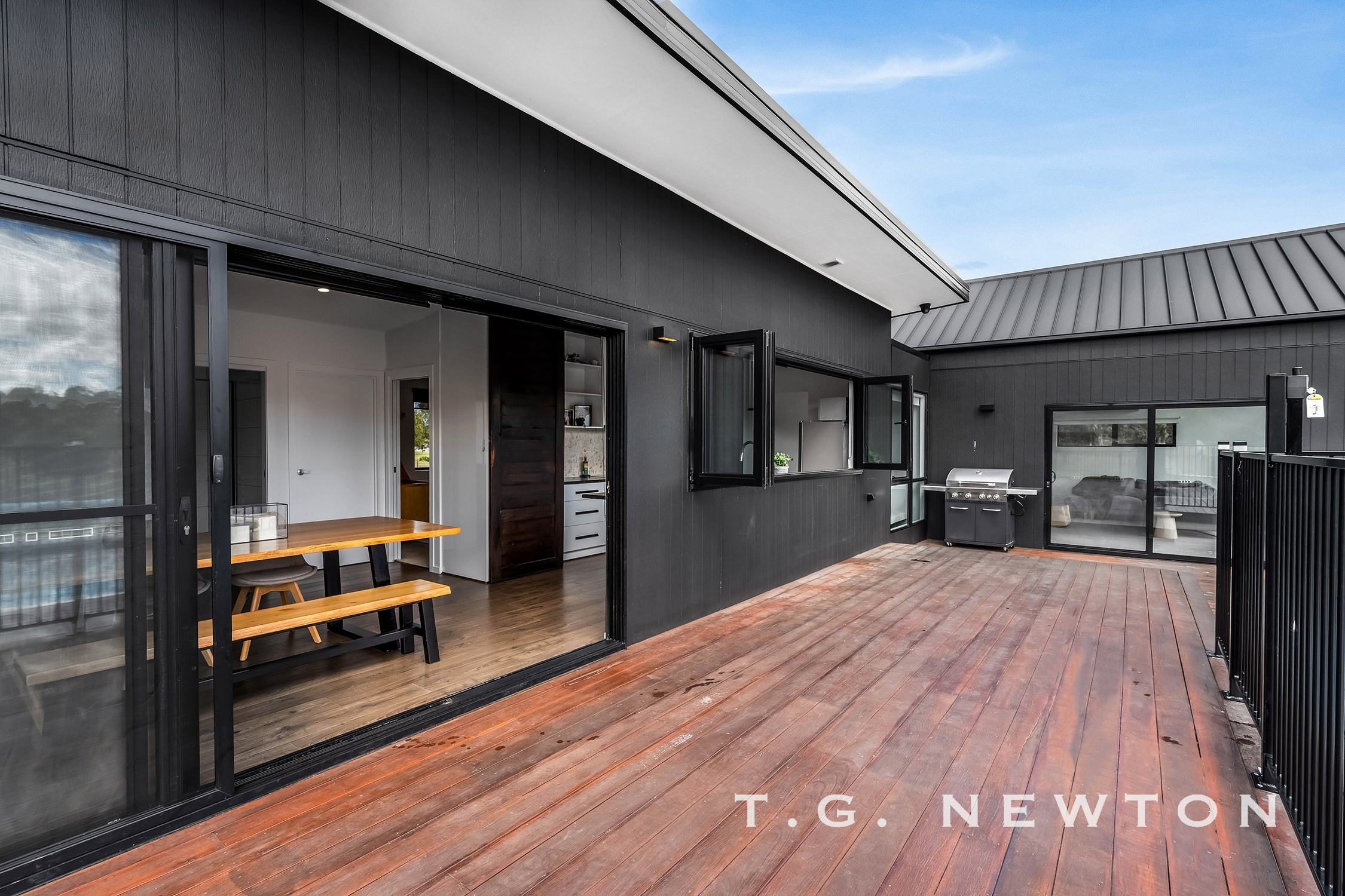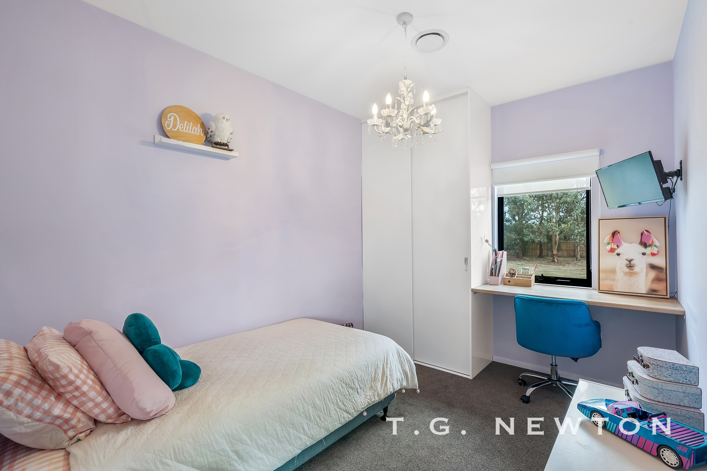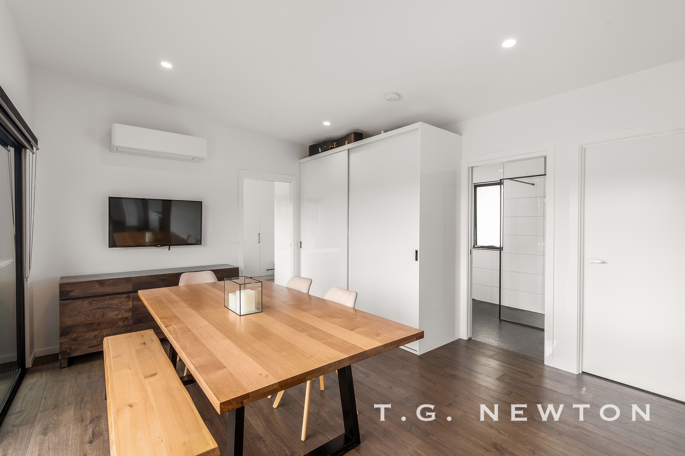 This recently built home boasts a sleek and stylish modern design. Throughout the home, you'll find ample bench space in the kitchen, an elegant stone splash back, and stylish barnyard doors covering the pantries, creating a striking and functional focal point. The double blinds throughout the house allow you to control the light and privacy to your liking, maintaining the light-filled ambiance it offers.