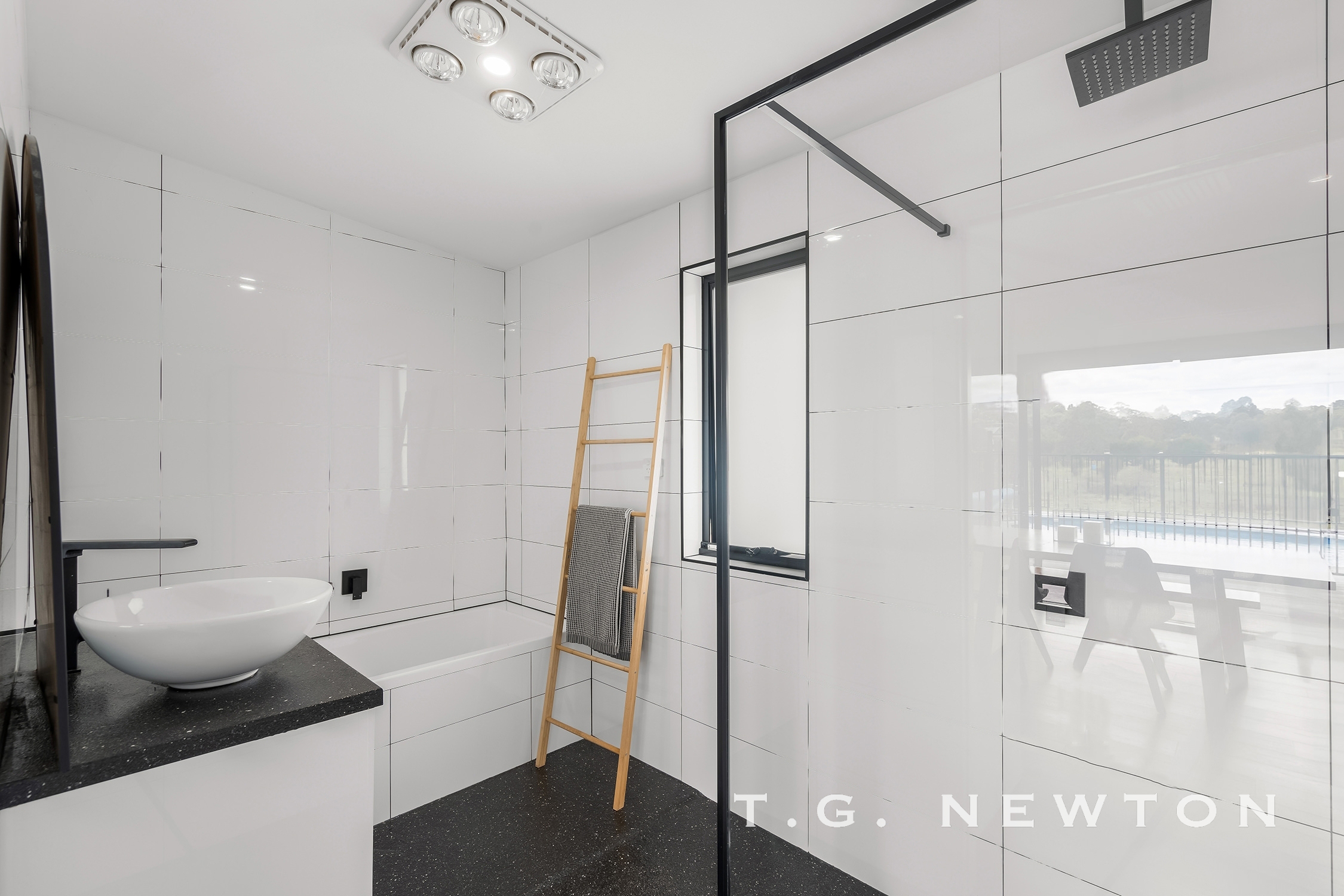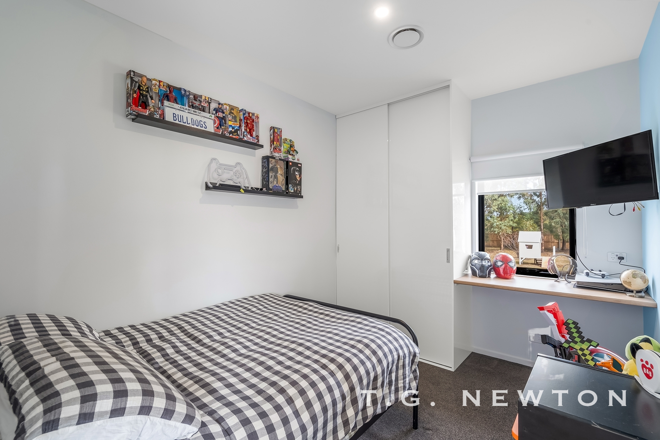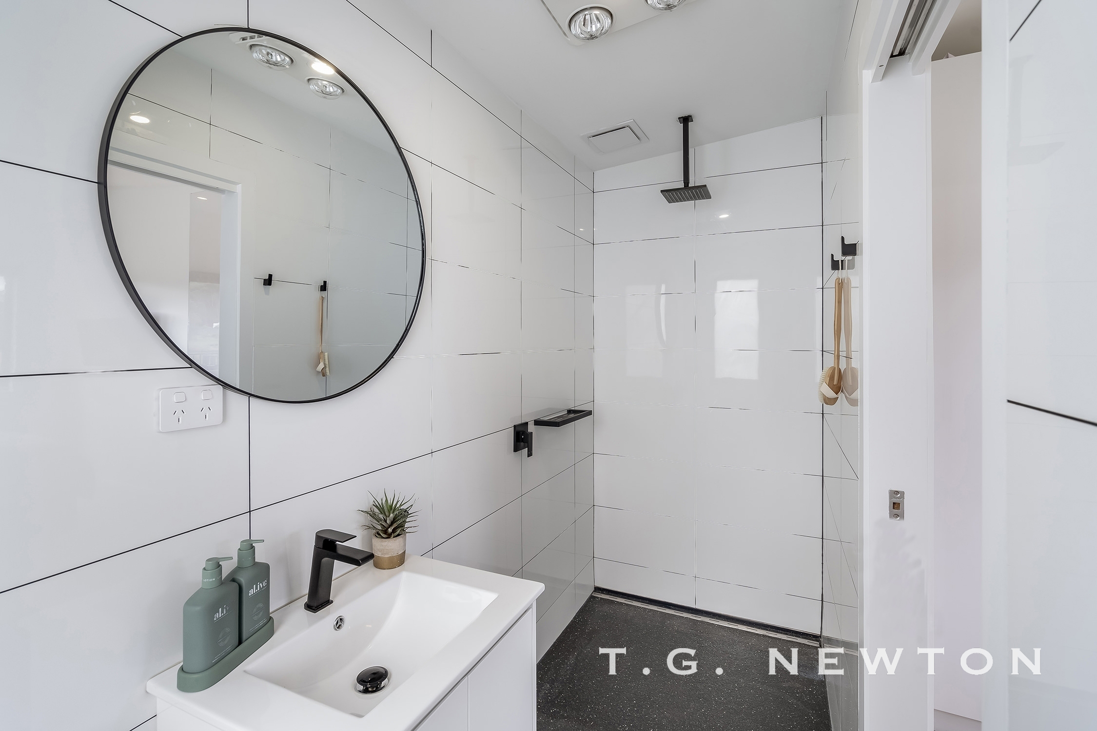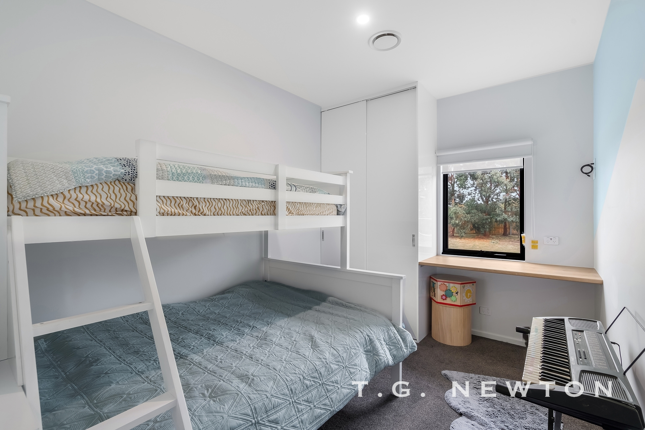 This recently built home boasts a sleek and stylish modern design. Throughout the home, you'll find ample bench space in the kitchen, an elegant stone splash back, and stylish barnyard doors covering the pantries, creating a striking and functional focal point. The double blinds throughout the house allow you to control the light and privacy to your liking, maintaining the light-filled ambiance it offers.