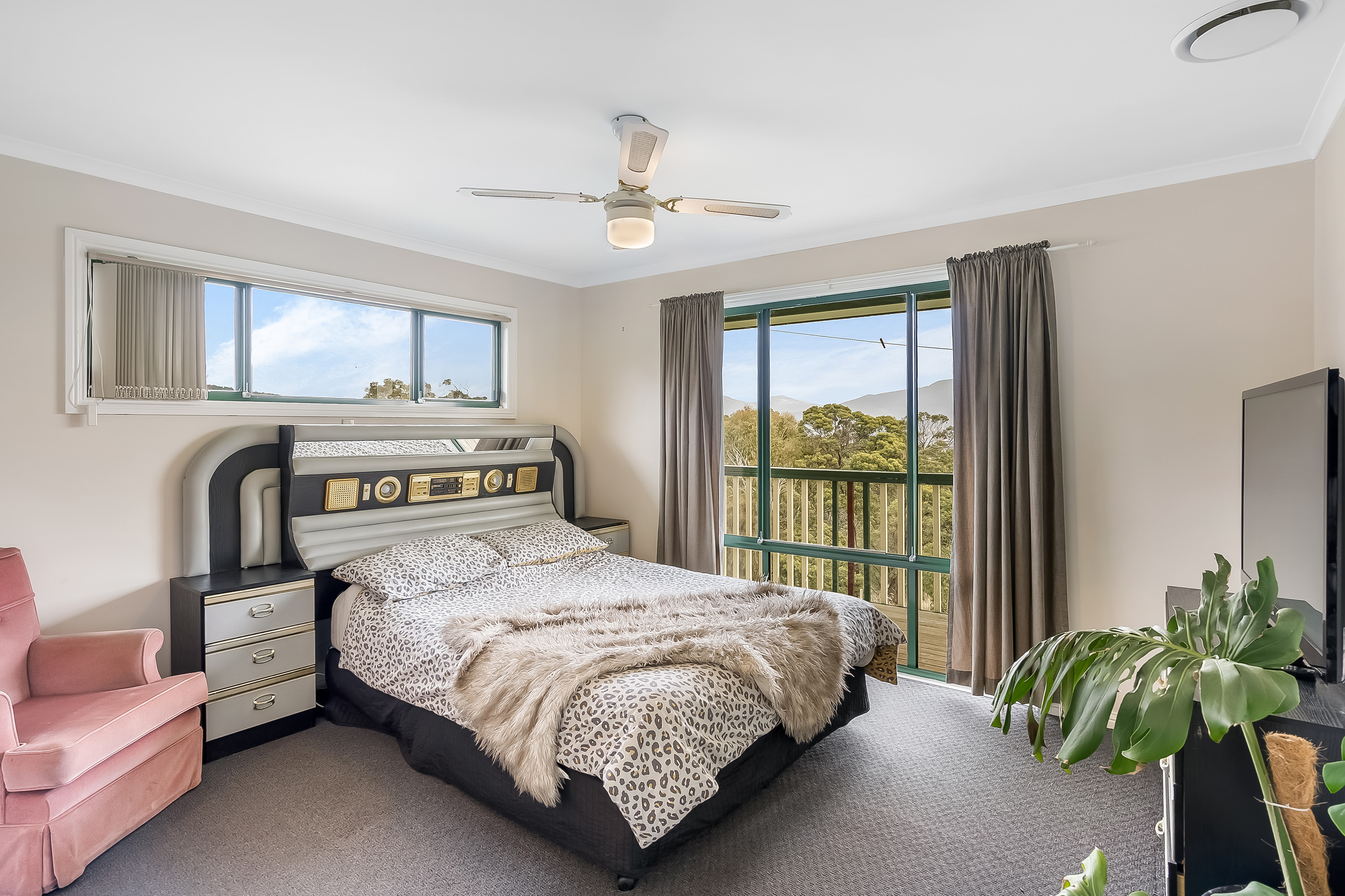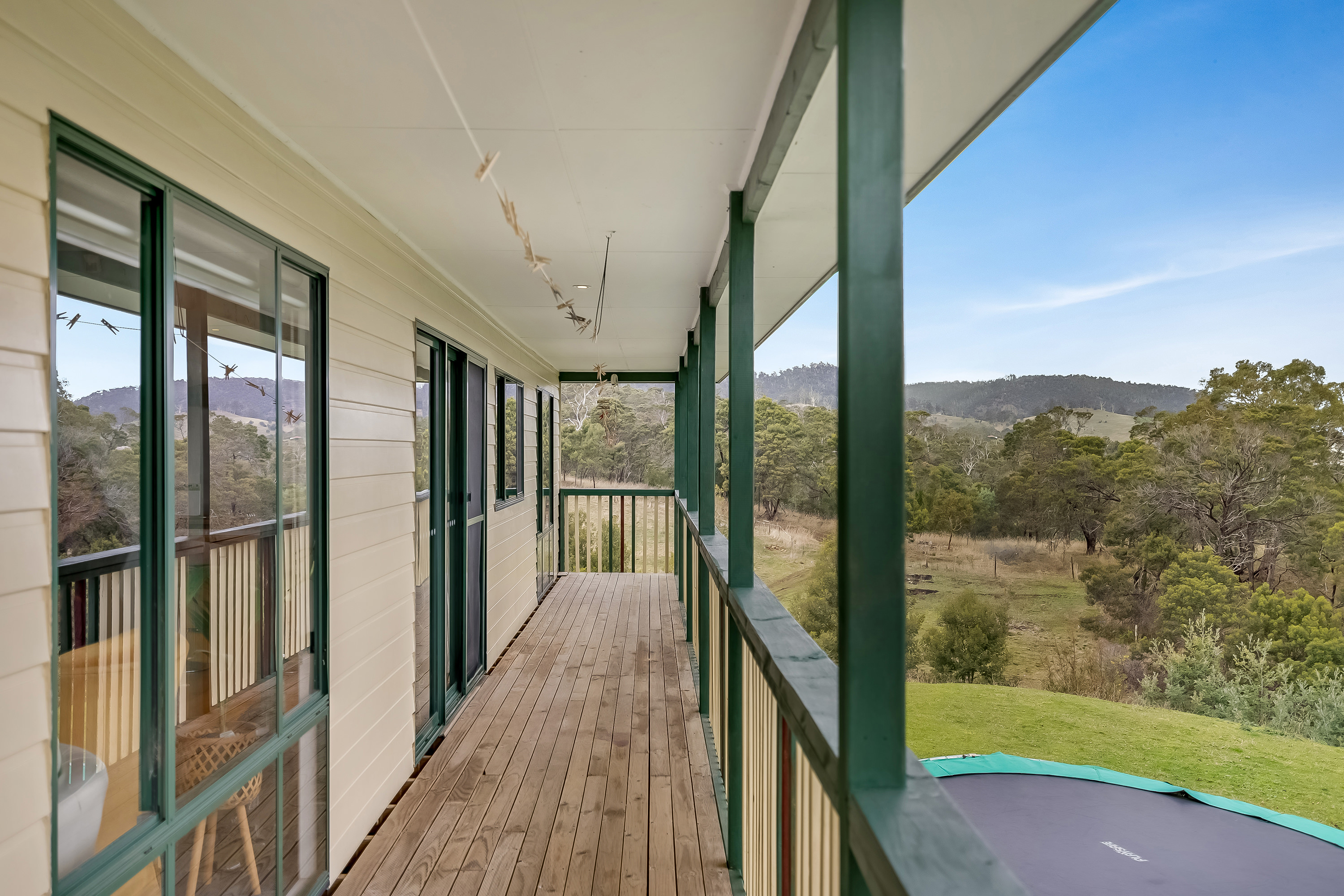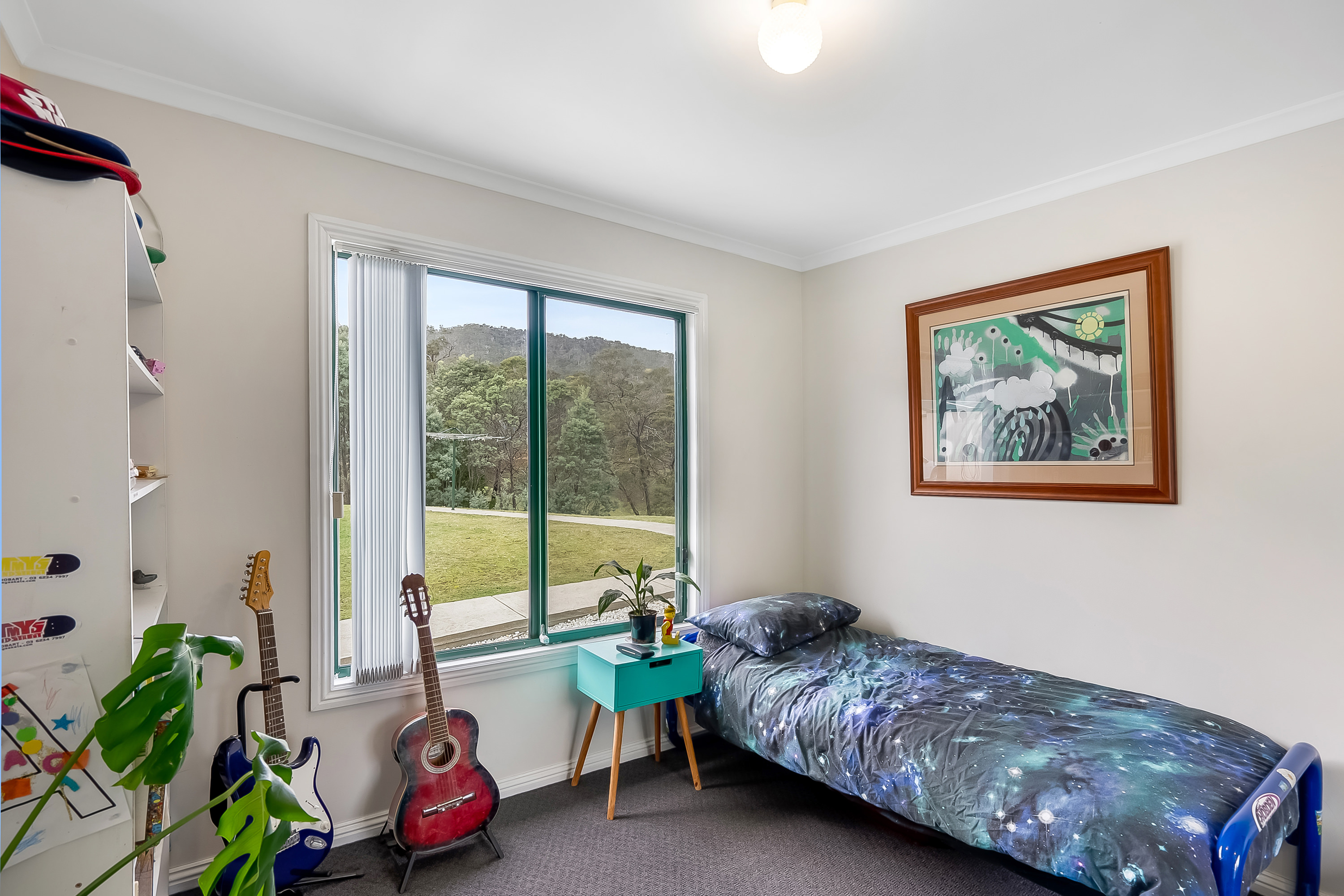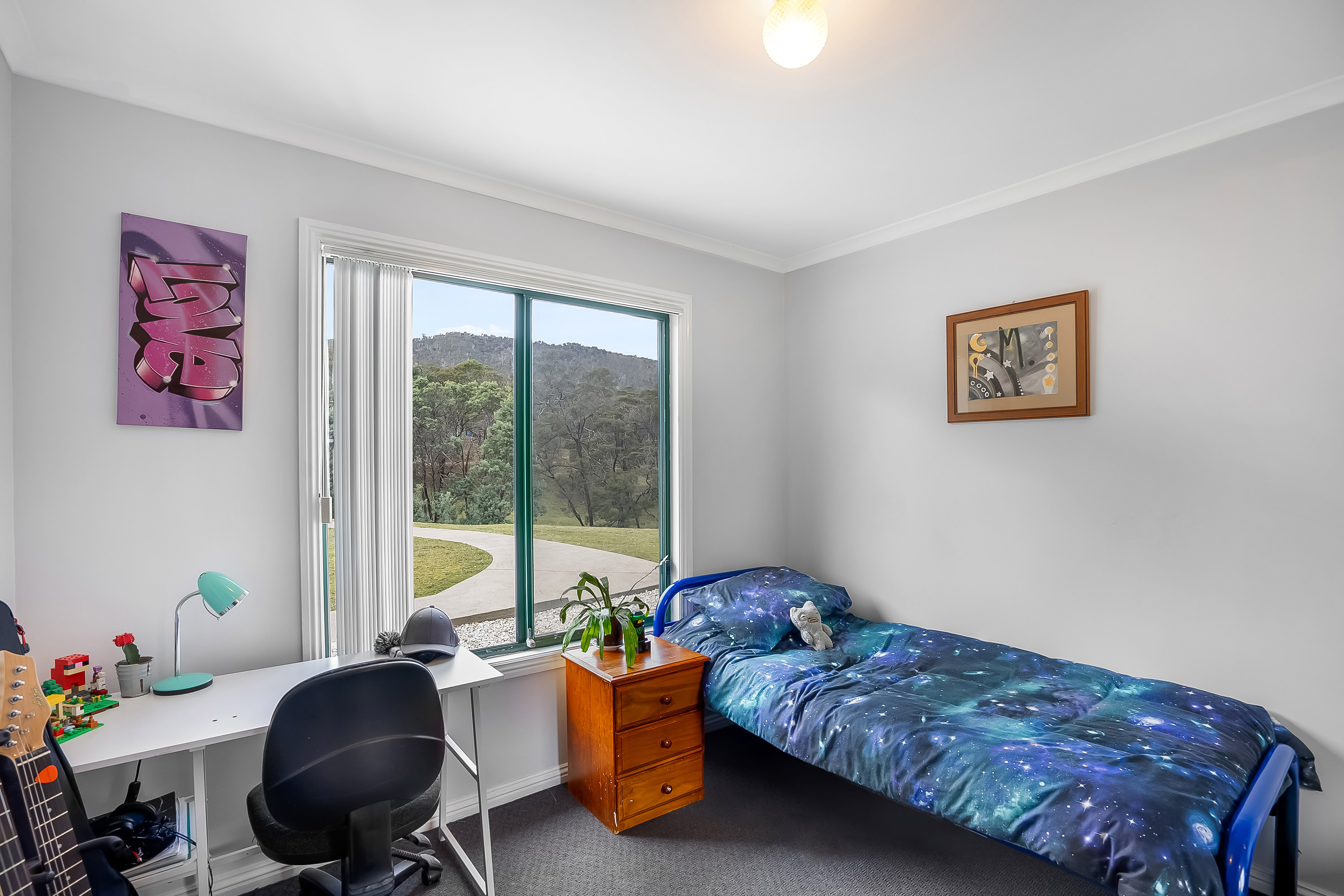 Along the hallway, three bedrooms feature built-in robes and enjoy the brilliant morning sun. The family bathroom features a separate shower, spa bath and vanity, with the toilet located separately. The main bedroom is a generous size with a walk-in wardrobe plus ensuite and boasts a stunning view across the valley.