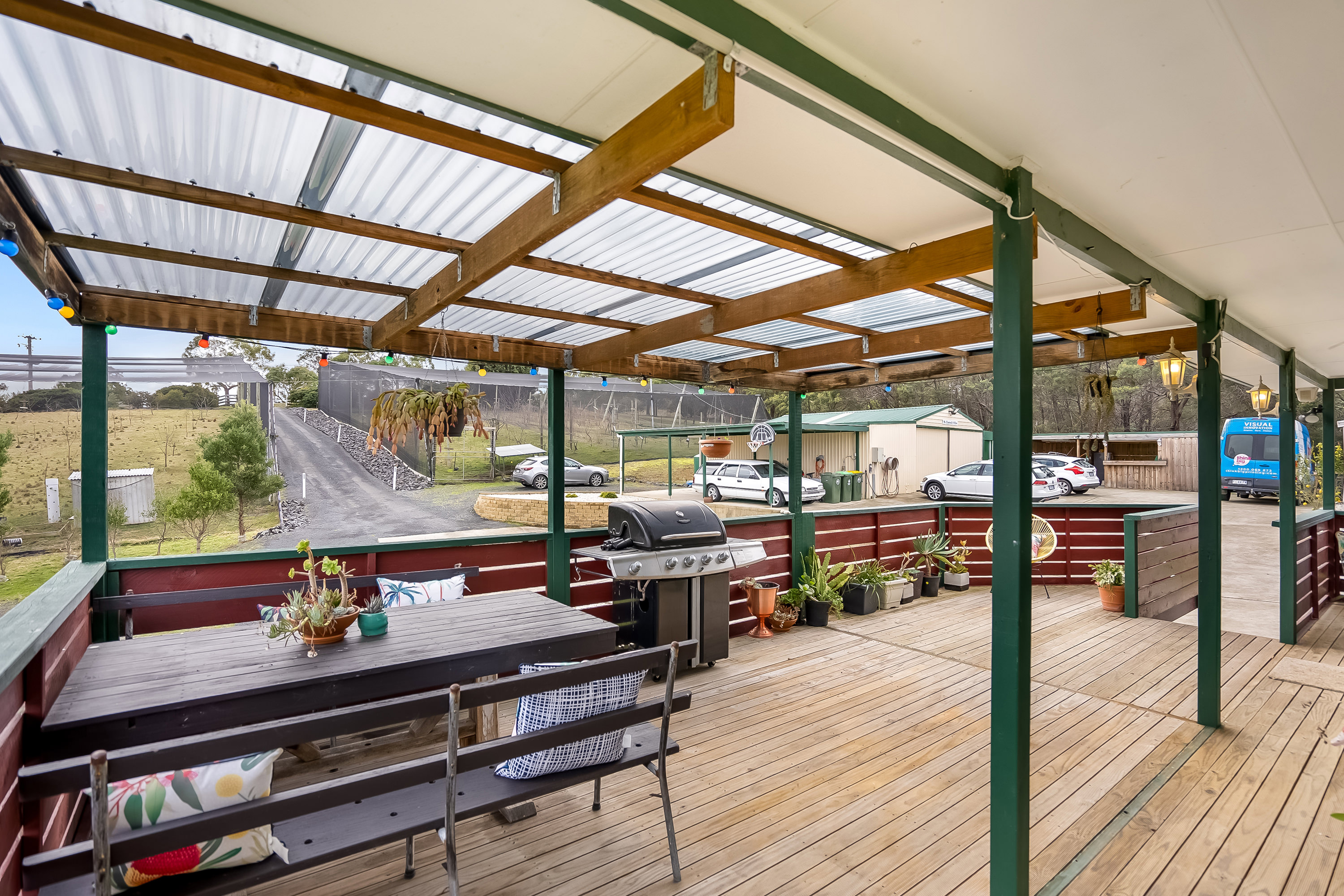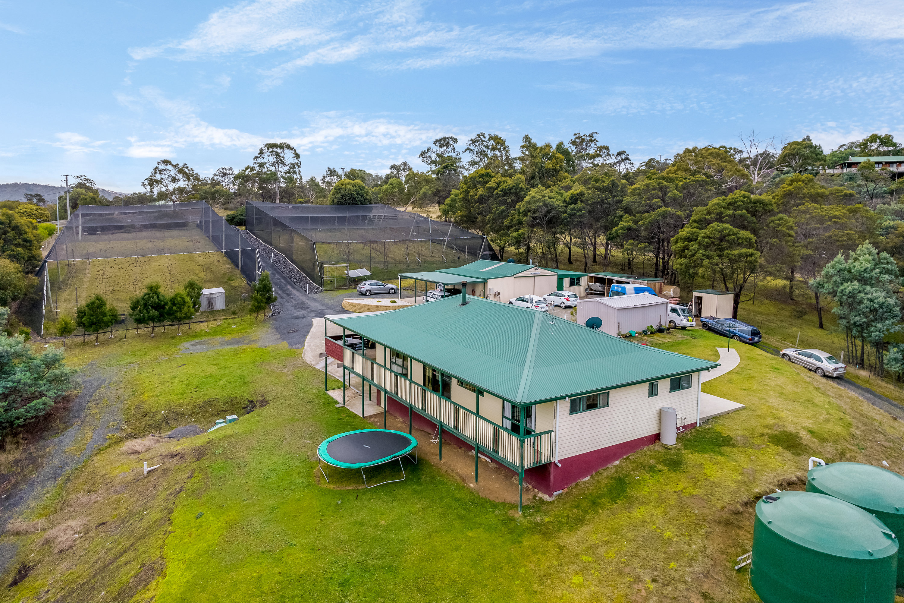 An impressive array of powered outbuildings and a carport provide plenty of space for cars, toys, storage and a seriously enviable man-cave / she-shed.